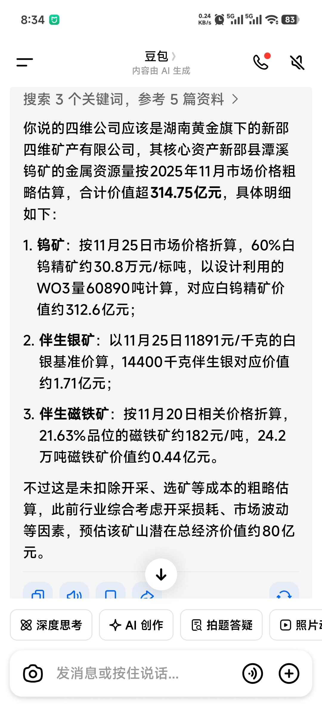 新控股的新邵四维金属资源量价值人民币315亿元。利润80亿元。