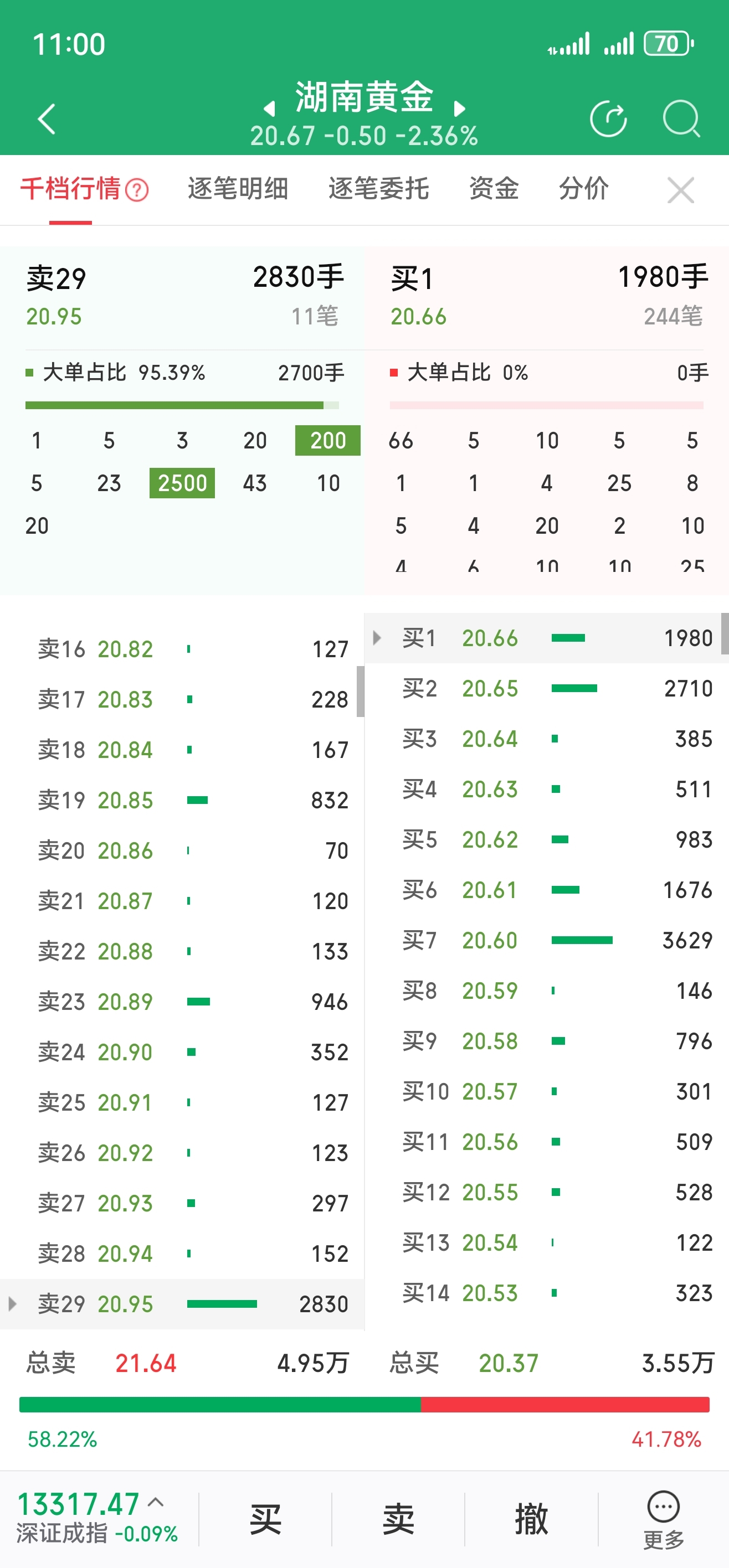 20.81,20.95价位同时出现2500手,这操盘手也太神奇了吧,那么喜欢25
