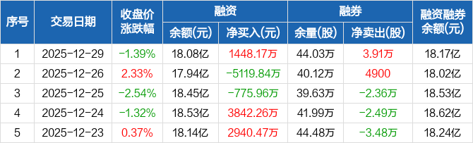 湖南黄金:融资净买入1448.17万元,融资余额18.08亿元(12-29)