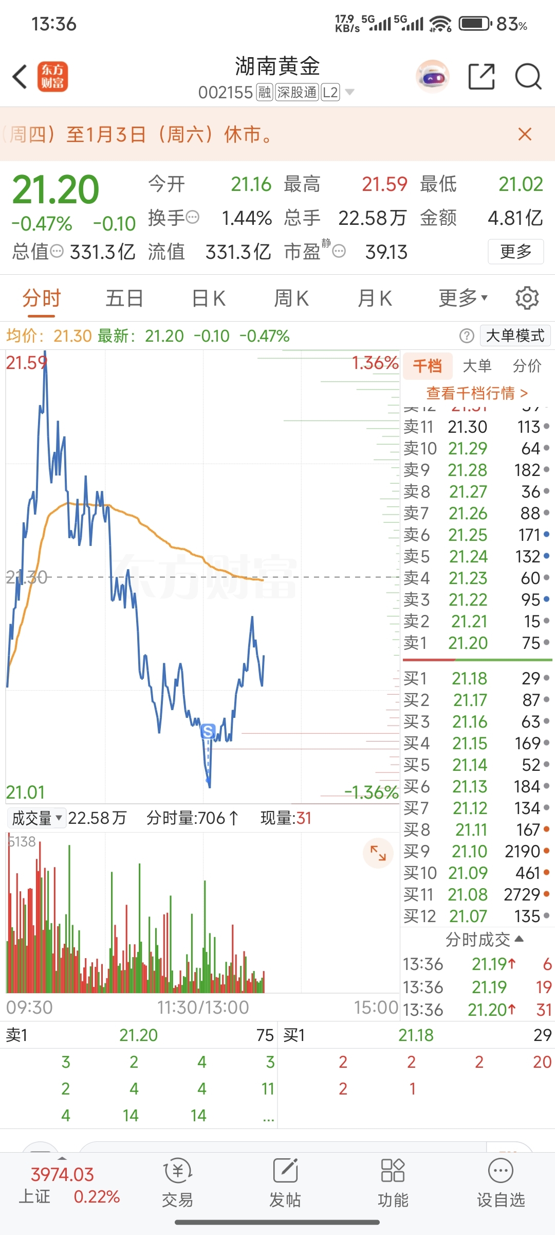 $湖南黄金(SZ002155)$ 我刚刚吃了三连板,被你玩了,我服了,你是我大哥