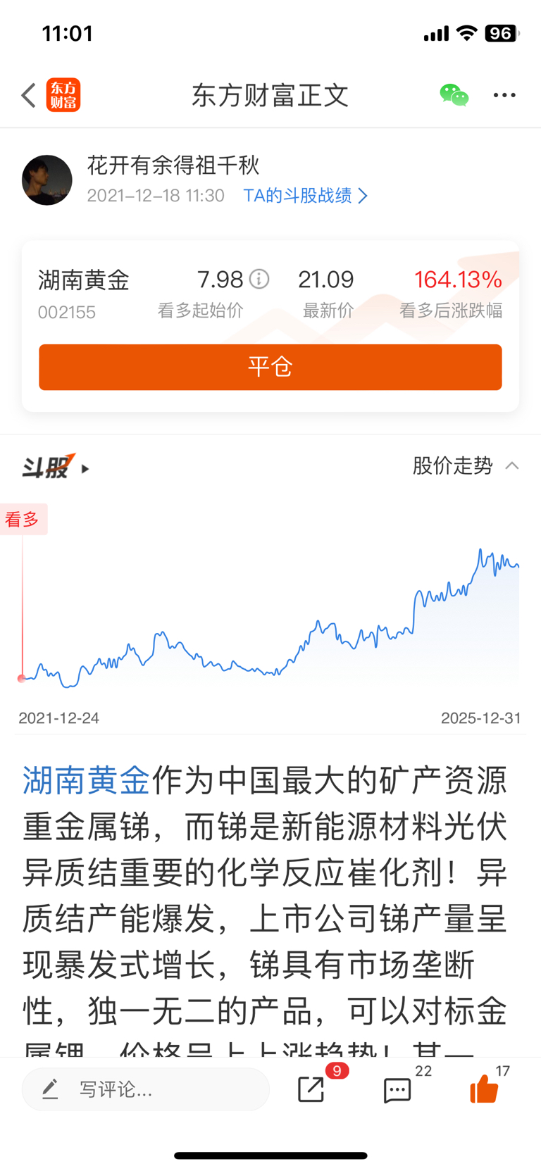$湖南黄金(SZ002155)$ 江恩理论!大家请看我在2021年发的帖子,文章详细介绍未来黄金股上涨的原理,是不是百分之百命中,若不信,我可以上传截图,大家看,我的江恩理论厉害不厉害,牛不牛,盈利才是硬道理!我在2005年上高中时与一位博士学习江恩理论,我又在大学四年中寒暑假钻研四年,但我也没有读懂吃透,我又考研,自研西方经济学,考研82! 由此可见!玩股要有知识储备!