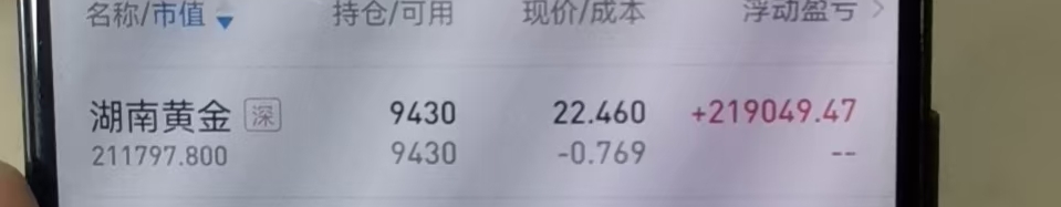$湖南黄金(SZ002155)$ 从2025年的1月份开始首批买入10万元,到后面逐渐增加仓位,经过一年的时间反复做T,随着股价的上涨终于把成本做到负数。这一年来无论什么情况下我都最少保持对于湖南黄金10万的底仓,这是原则,不能完全踏空,也决定心态。