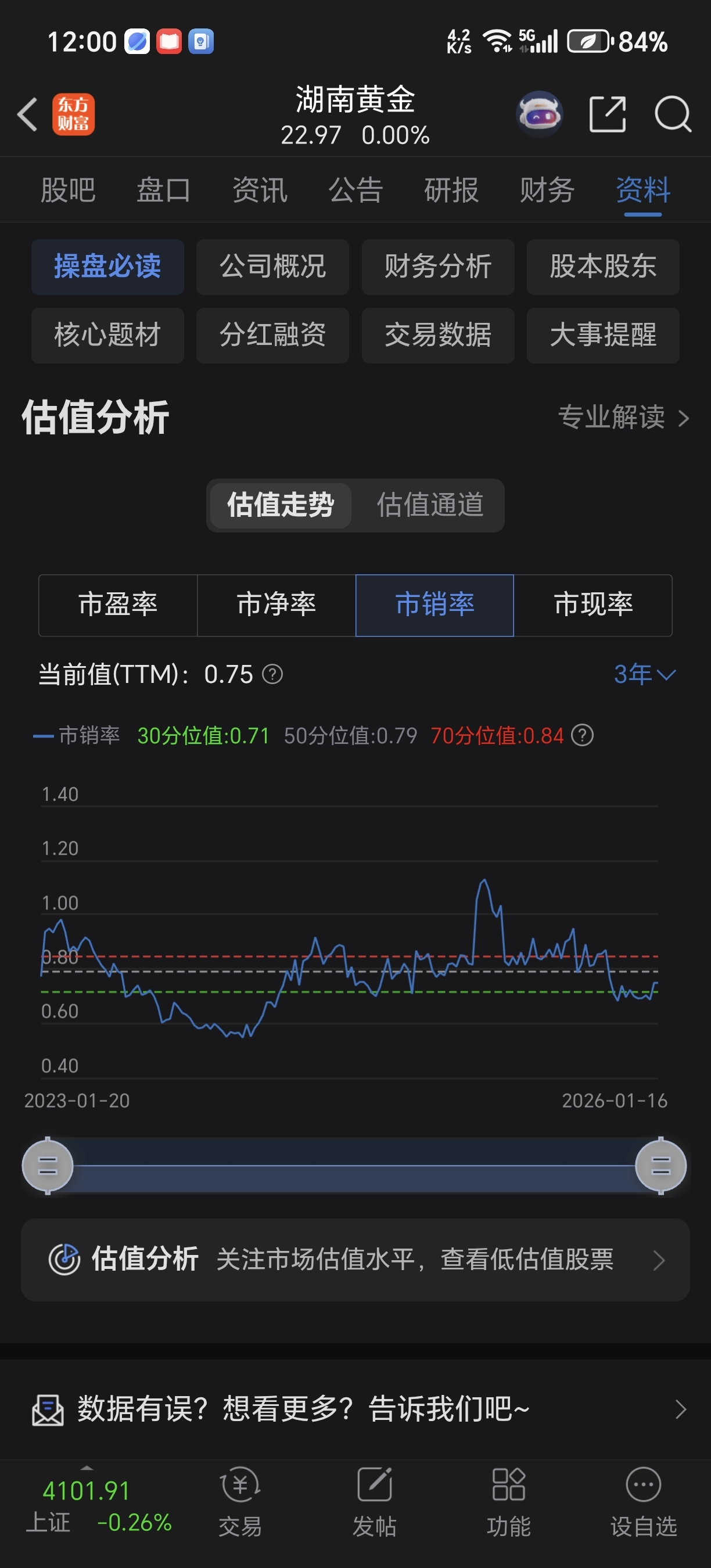 $湖南黄金(SZ002155)$ 湖金抛开其他不说,单就市销率只有0.75这一项,无论是横向和自己过往历史比,还是纵向和行业其他个股比,都是独一无二的存在,这种估值低估本身就不正常,要知道这种市销率估值,只会在银行地产这类行业里才会有,所以复牌后先补涨再叠加重组后资产价值发现,目前股价基础上翻一倍实属正常……