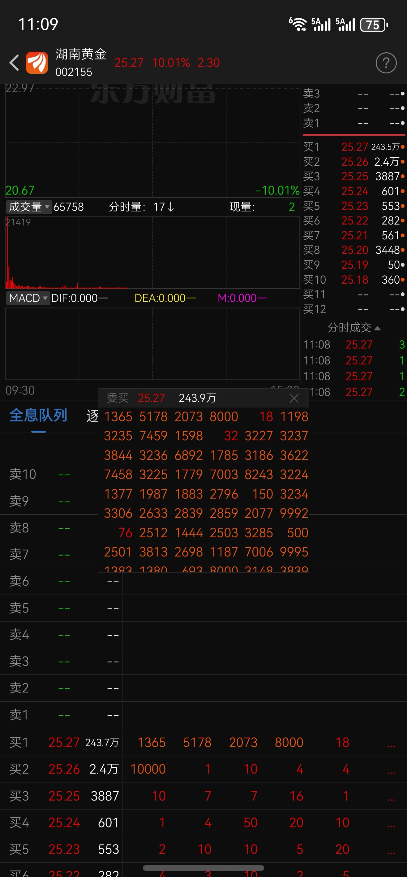 $湖南黄金(SZ002155)$ 排啥!前面全是大单!机构 小散想吃肉,难啊!