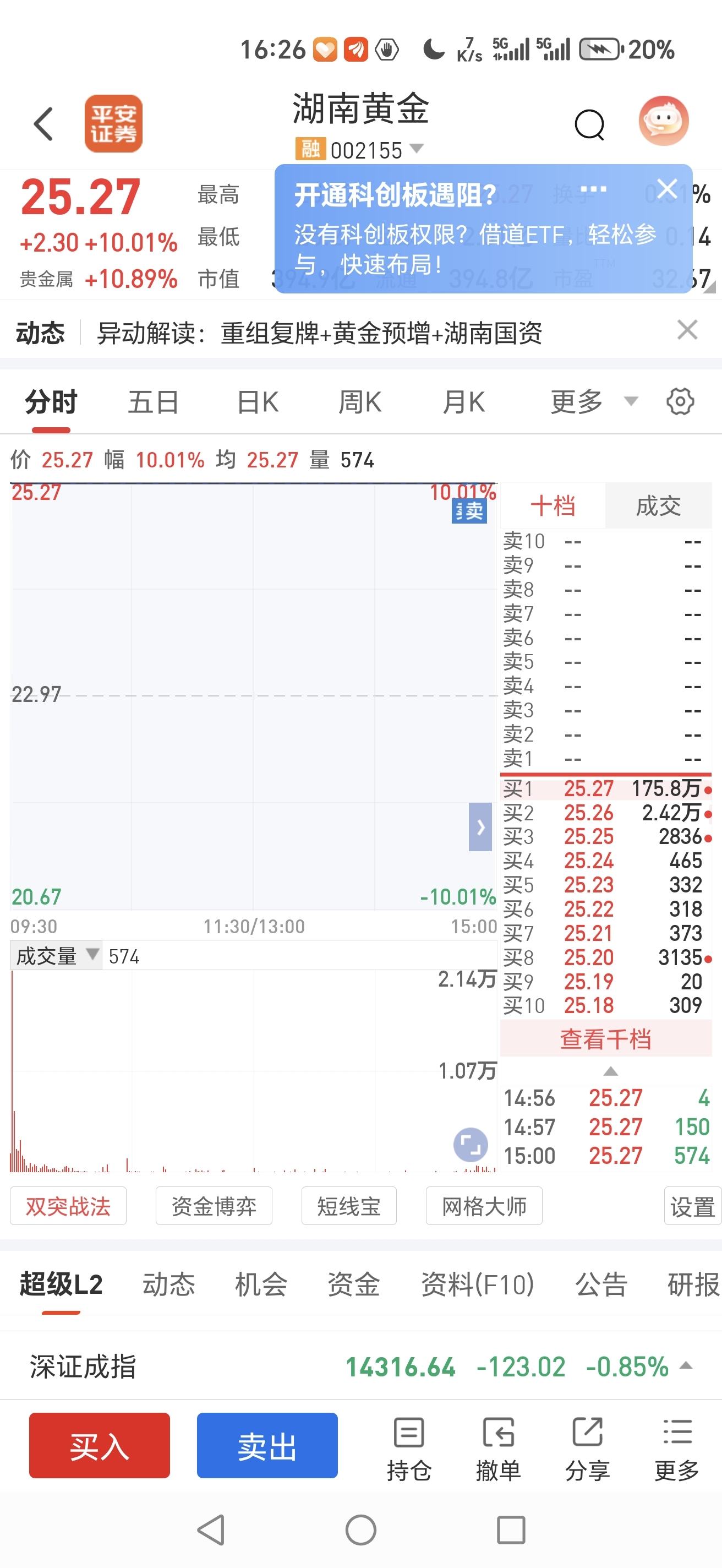 $湖南黄金(SZ002155)$ 到处大牛股,忙不过来,看大潜力股掉回调的多调,把这个卖一点点,去买些潜力股。正好卖了给别人也分享一点。