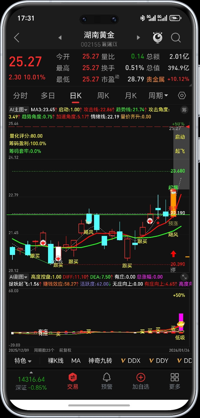 $湖南黄金(SZ002155)$ 补涨几个板?