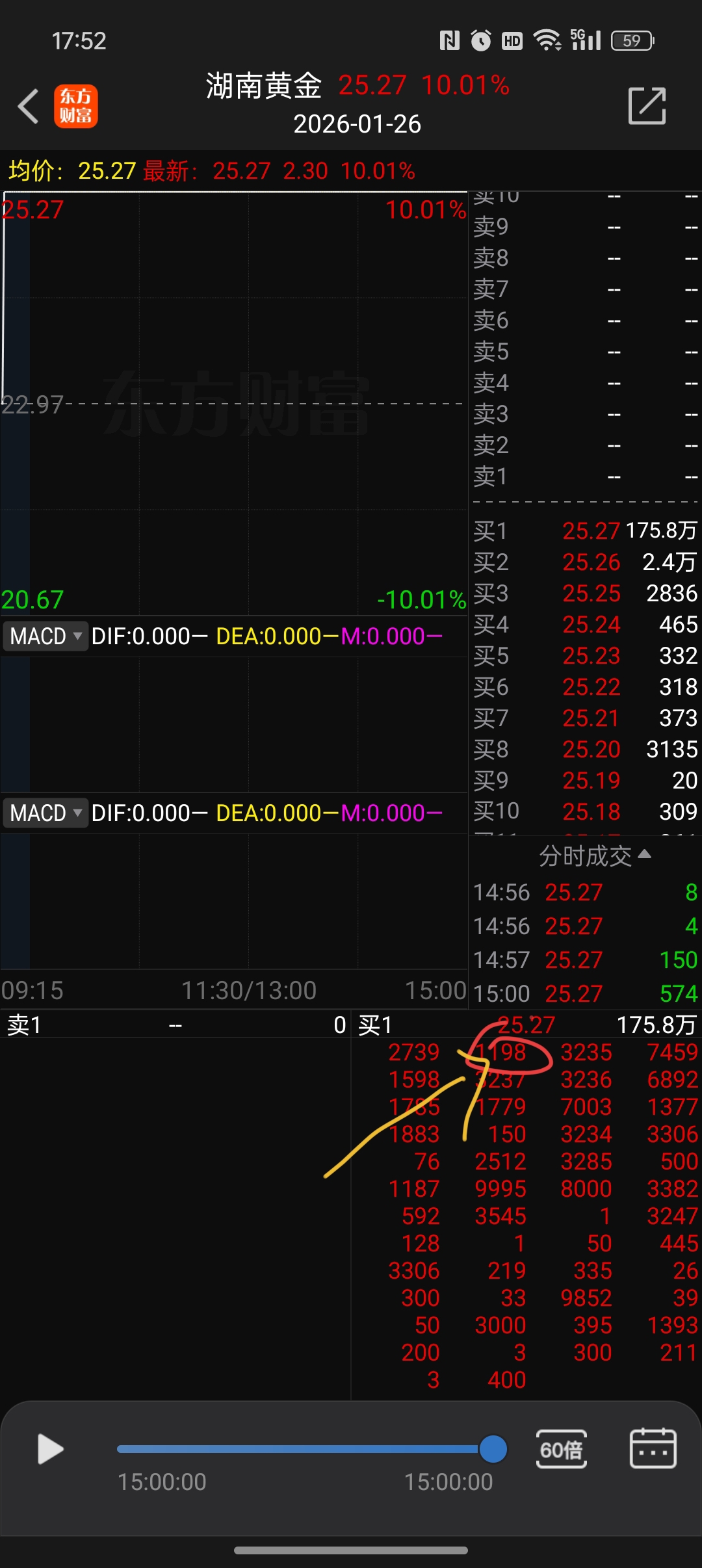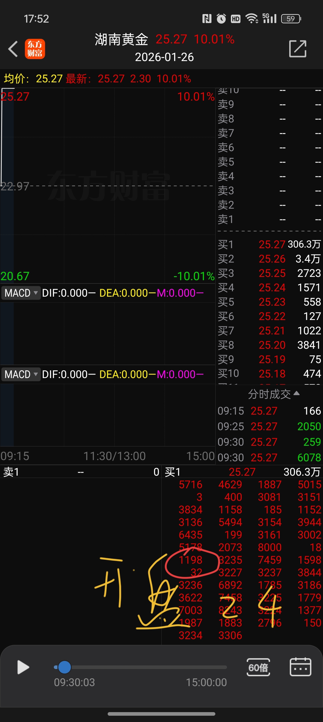 $湖南黄金(SZ002155)$ 一天成交24个单!怎么玩?!不公平