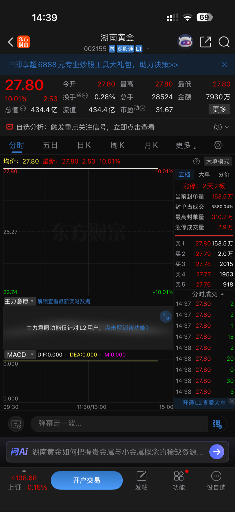 $湖南黄金(SZ002155)$ 还没8000万就涨停,千万别信那些股托,这货今晚肯定会自查停牌的,不买就对了,明天开始跌停,最少五个跌停起步