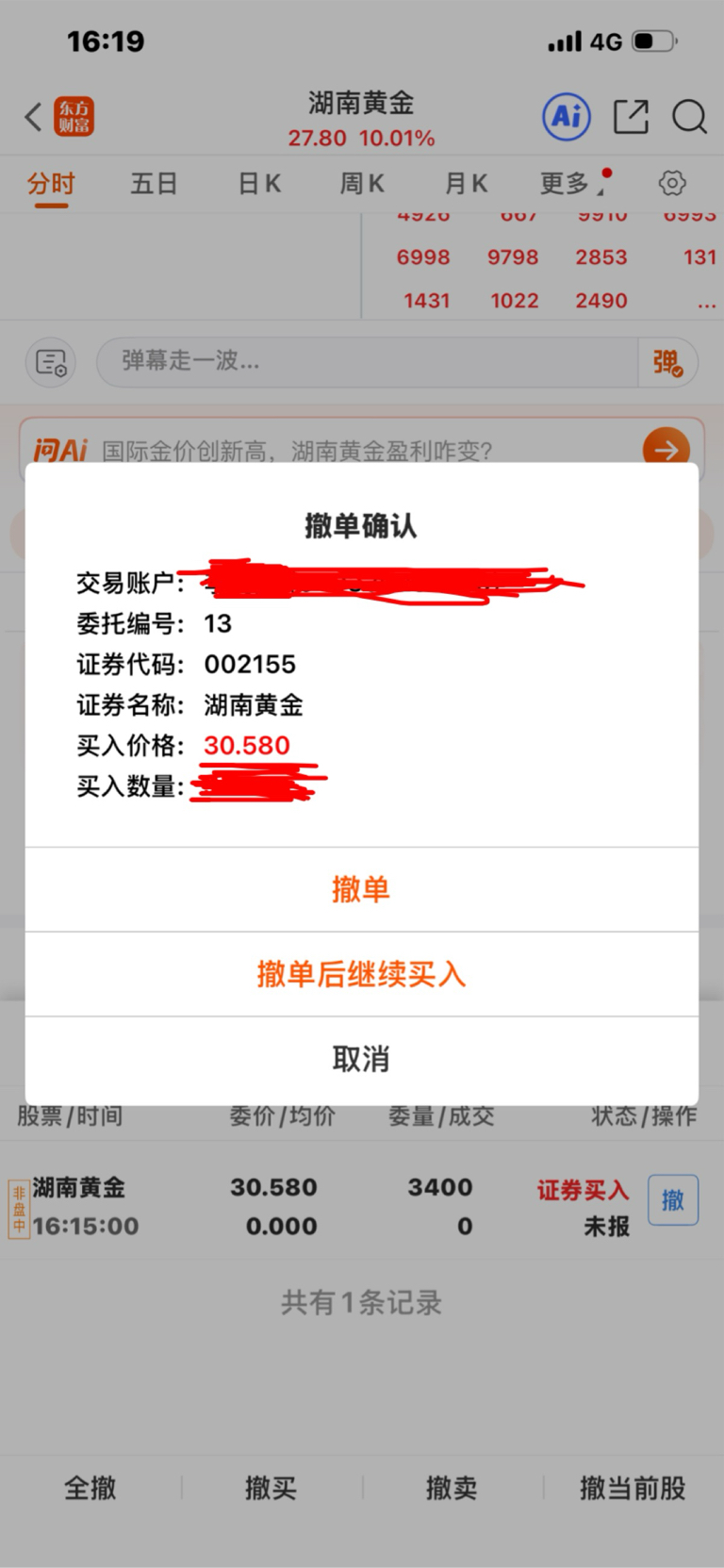 $湖南黄金(SZ002155)$ 等着挂单都搞主力不赢,5秒内挂单都排东方财富第13,撤单算了,不可能买的进!
