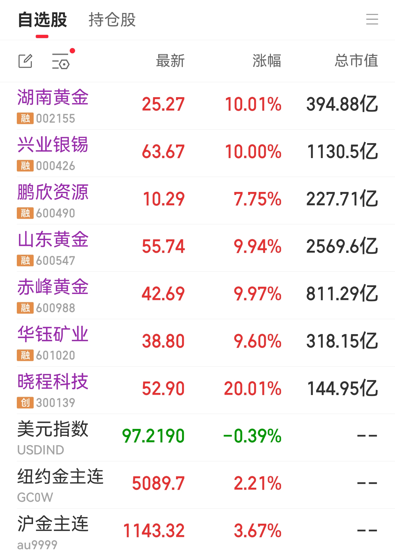 $湖南黄金(SZ002155)$ $兴业银锡(SZ000426)$ $华钰矿业(SH601020)$ #收盘点评# #炒股日记# #复盘记录# #强势机会#
