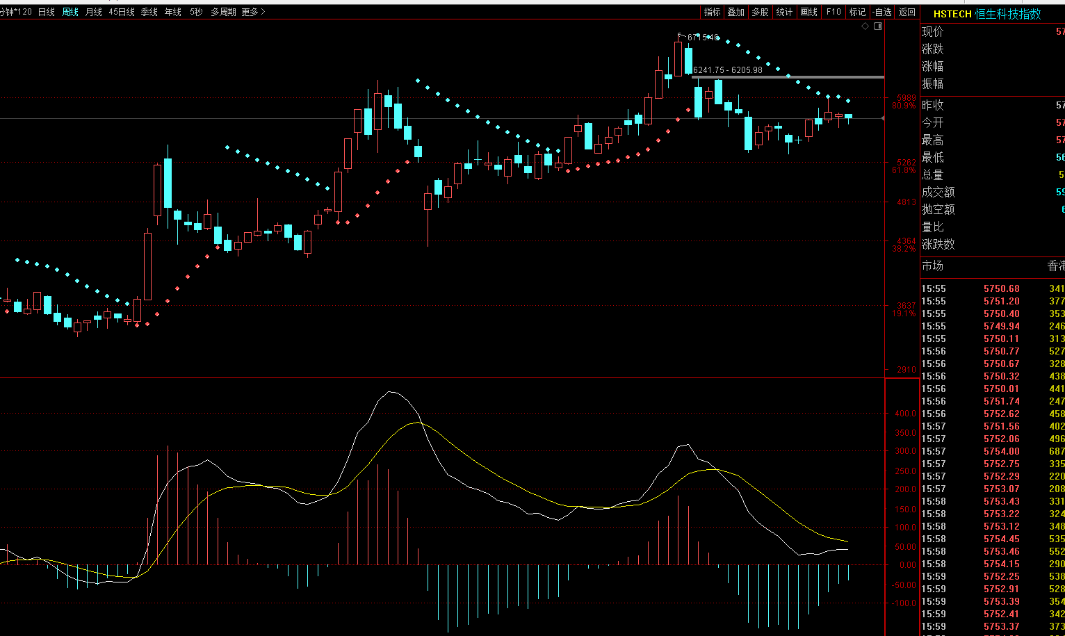 再给大家讲一下看好软件的原因,我们去看一下恒生科技指数,恒生科技指数现在这个位置它也是周线反转的位置,你们想想如果恒生科技指数出现周线反转大涨的话,我们A股里面的科技会不会也会起来。不要轻易看空软件,看看恒生科技指数是不是类似我们5个星期之前的软件的位置