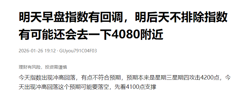 文章看,你去点开去年12月19号的文档,看看里面的原图,看看我有没有说是三角形整理末端,现在你还不看好软件吗?免得一些人说马后炮点击文章链接去看图片,可以讲我是全网第1个给大家讲的软件要周线反转,你看看12月23号的文章,看看我有没有在讲到软件服务指数类似于二四年八九月份的走势,我是在1月9号的文档里面晒出了我持有软件相关的个股以及加仓了哪些软件,看看我的交割单是不是12月23号加的,看看国防军工到软件再到光伏设备我是不是都是提前给大家讲的。https://caifuhao.eastmoney.com/news/20260109201418815229020https://caifuhao.eastmoney.com/news/20251223182510923883760https://caifuhao.eastmoney.com/news/20251219190030456274090