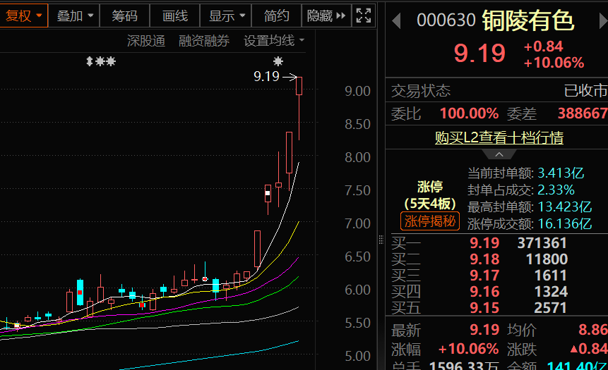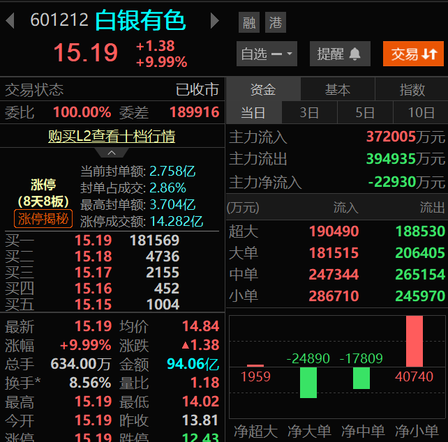 不过$白银有色(SH601212)$却拒绝回调,上午尾盘封住涨停,最终收获8天8板!而$铜陵有色(SZ000630)$也是顶着主力净卖出超10亿,最终实现5天4板,难道是黄金股回流的信号?
