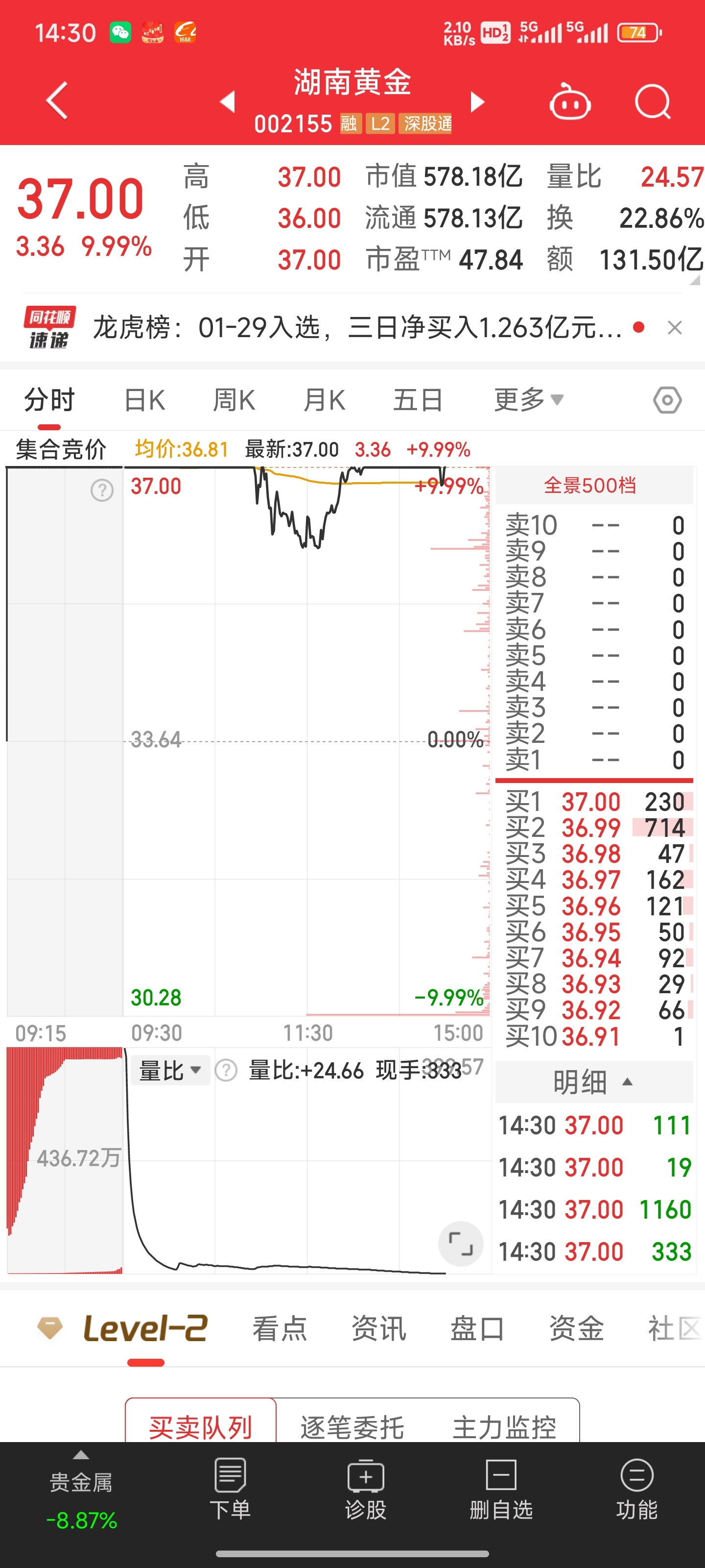 $湖南黄金(SZ002155)$ $湖南白银(SZ002716)$ $四川黄金(SZ001337)$ 不要表演了,周一看压单有百万手