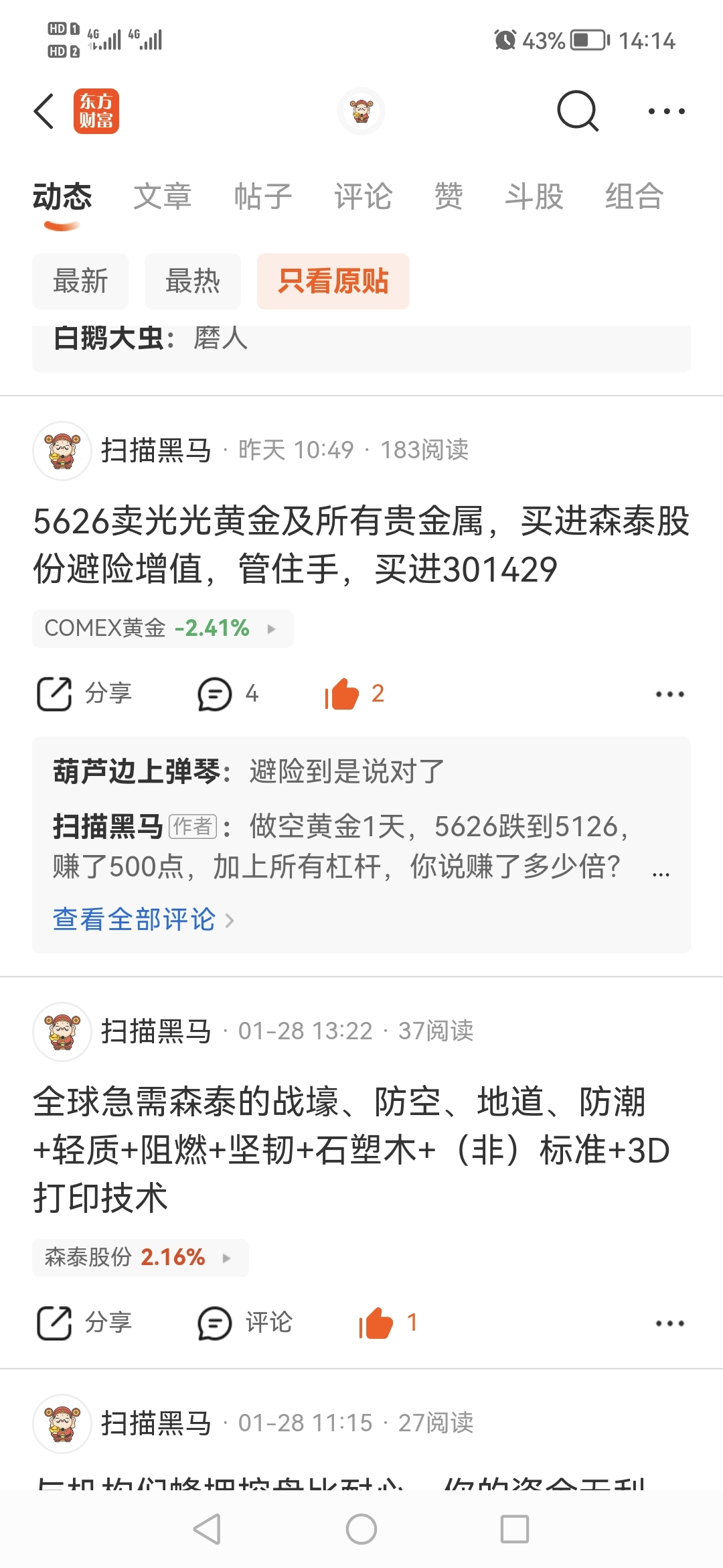 $湖南黄金(SZ002155)$ 你听劝立即换到森泰股份避险增值301429