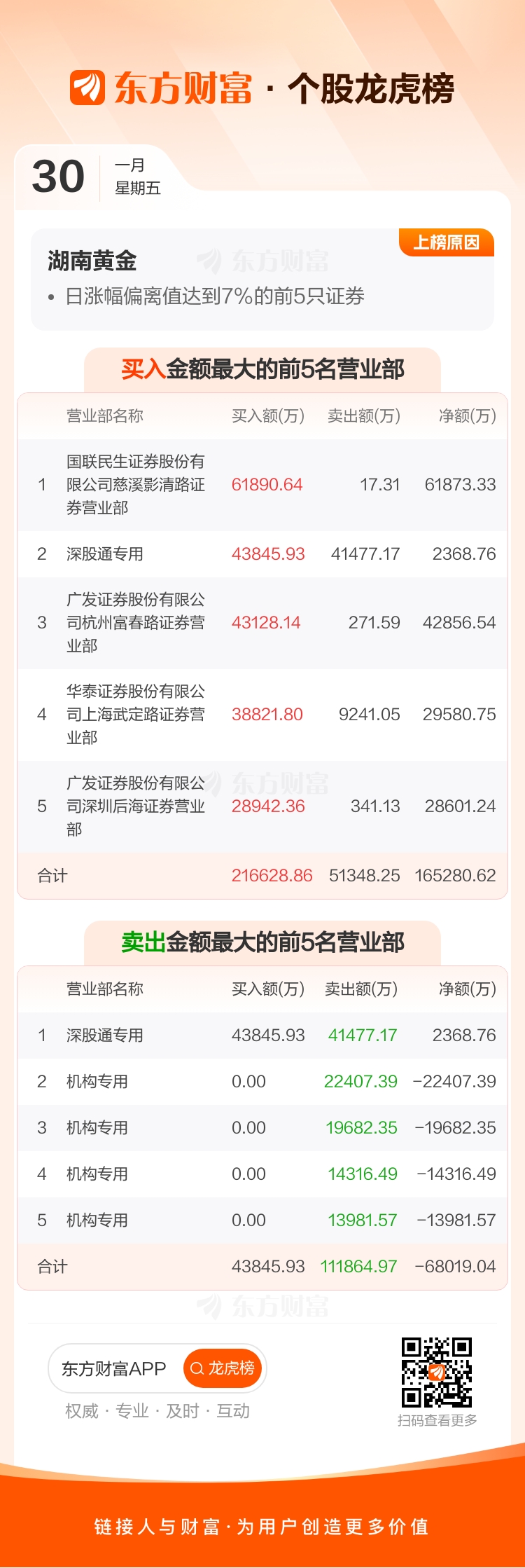 $湖南黄金(SZ002155)$ 游资来了,净买额16亿,今天应该谢谢他们,机构洗出去了,不过吃了五个板也可以了!