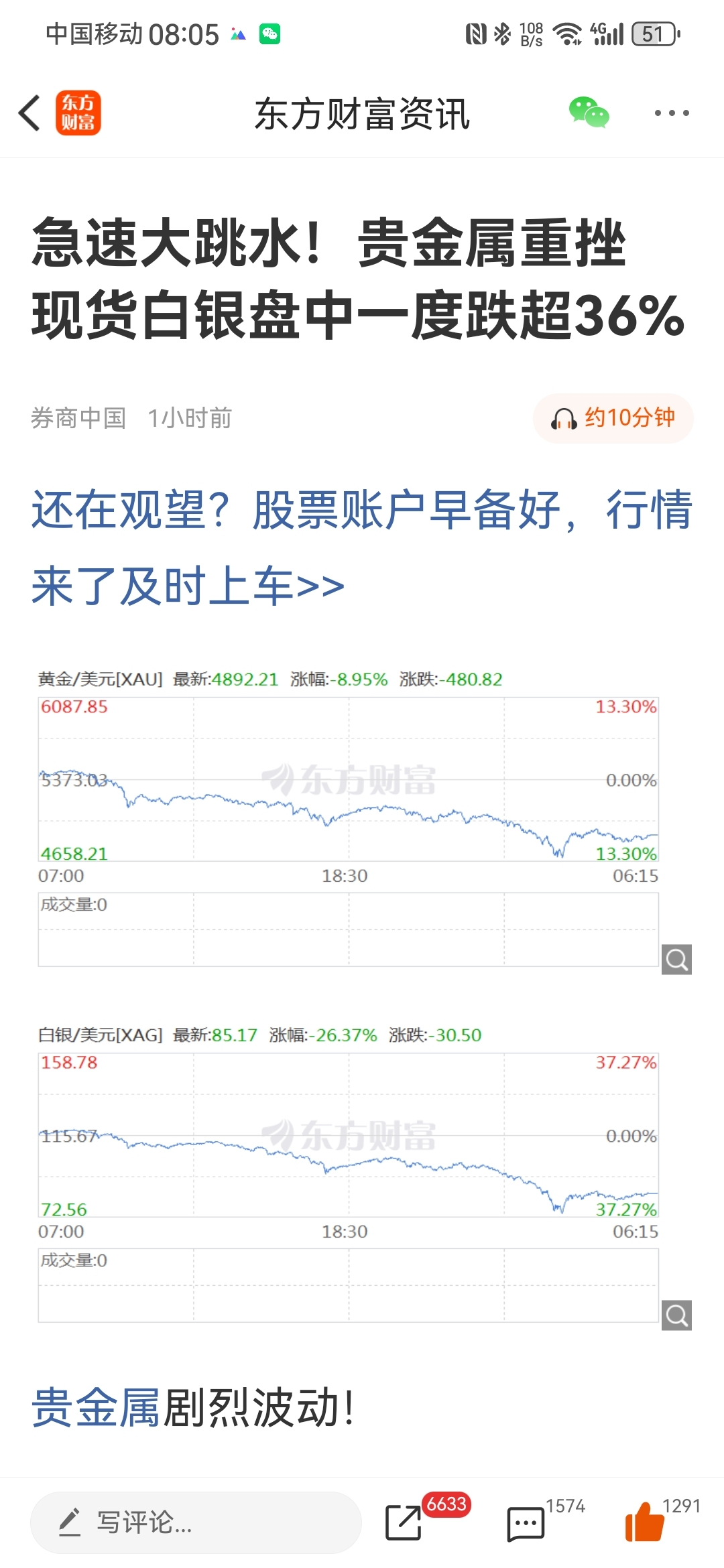 $湖南黄金(SZ002155)$ 哈哈,史诗级暴跌