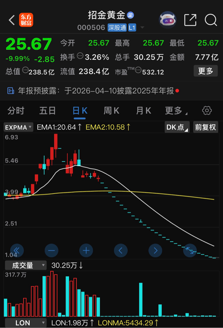 下周一湖南黄金会不会像去年的招金黄金一样跌法!!!