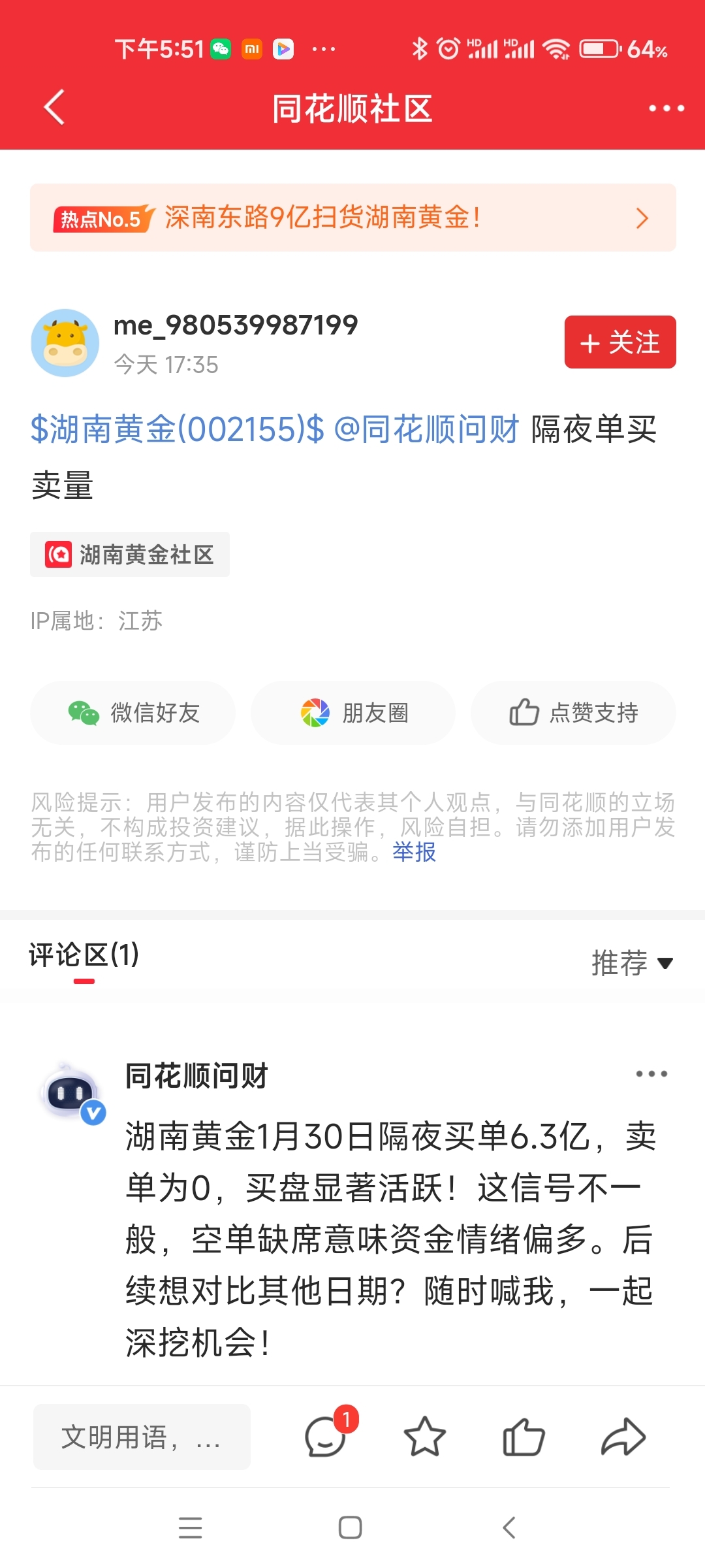 温馨提示: 1.根据《证券法》规定,禁止编造、传播虚假信息或者误导性信息,扰乱证券市场;2.用户在本社区发表的所有资料、言论等仅代表个人观点,与本网站立场无关,不对您构成任何投资建议。用户应基于自己的独立判断,自行决定证券投资并承担相应风险。《东方财富社区管理规定》