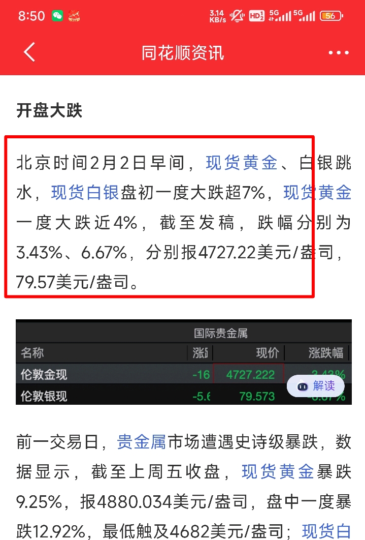 白银在史诗级大跌30%多后,今早继续跌7%,黄金今早继续跌4%