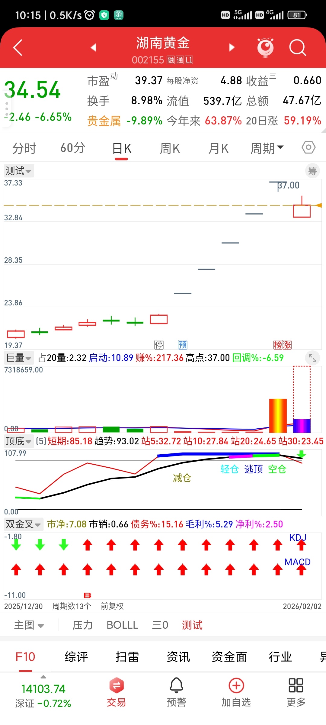 湖南黄金,上周五庄家硬着头皮,高位接飞刀!