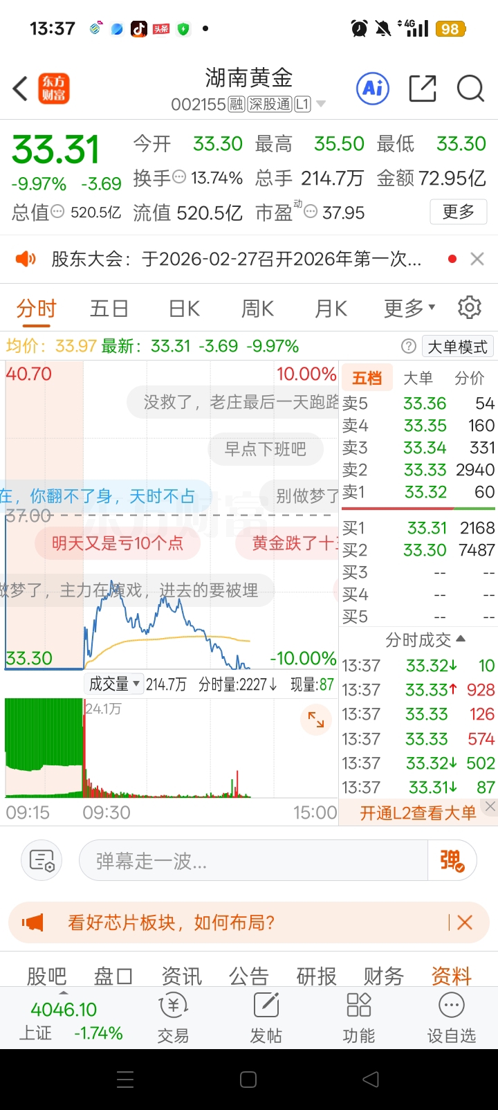 $湖南黄金(SZ002155)$ 又套了一批人进去了