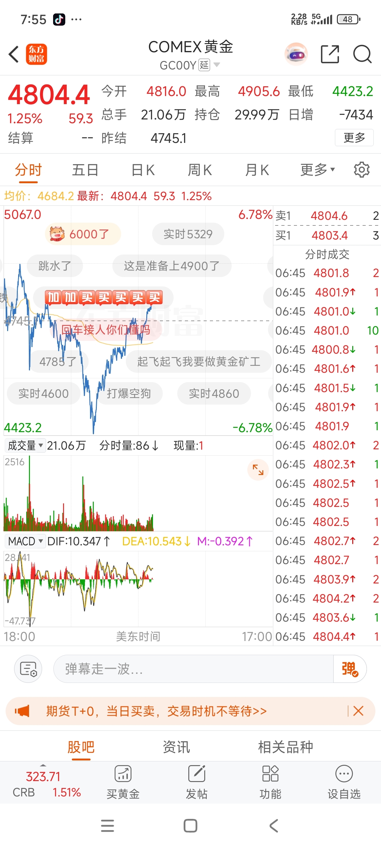 国际黄金期货4400↗4800返弹10%