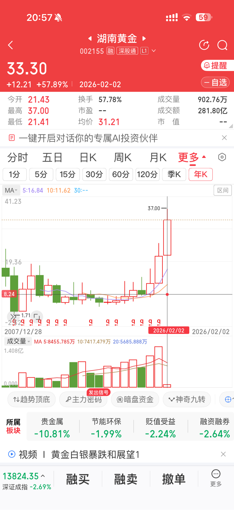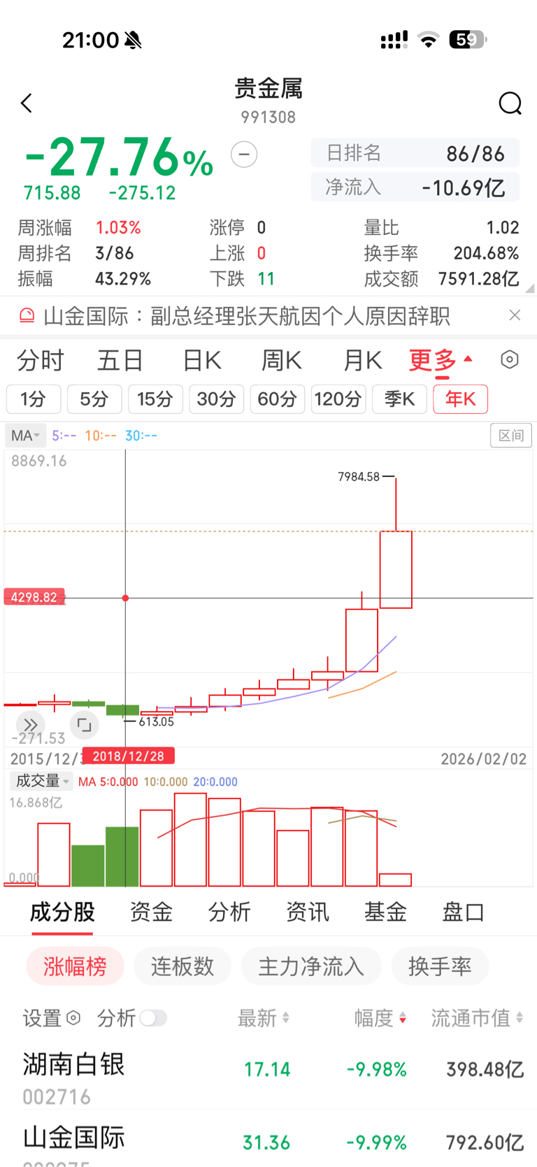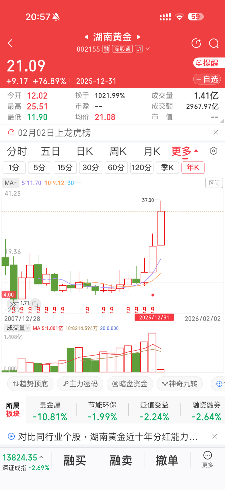 剔除重组,资产注入,湖南黄金26年至今,25年全年,涨幅均不及板块涨幅,贵金属板块从18年最低点615至今年最高点7198,板块涨幅12倍,湖南黄金18年最低点4.09至今年最高点才8倍。湖南黄金在板块中市盈率,市净率等各项指标均在板块中中规中矩,从中长期看有补涨要求,加之资产注入,短期缺乏下跌动能。