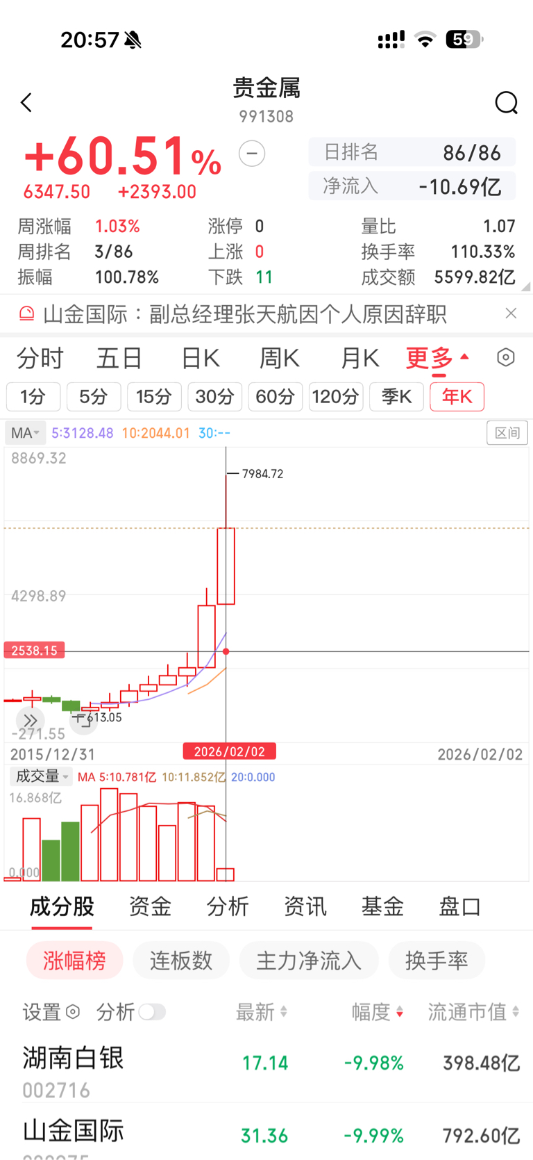 剔除重组,资产注入,湖南黄金26年至今,25年全年,涨幅均不及板块涨幅,贵金属板