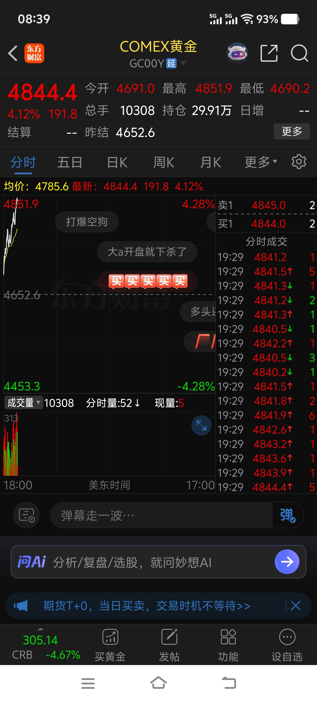 国际黄金曝涨,今天可不可以低开,让我进点货。