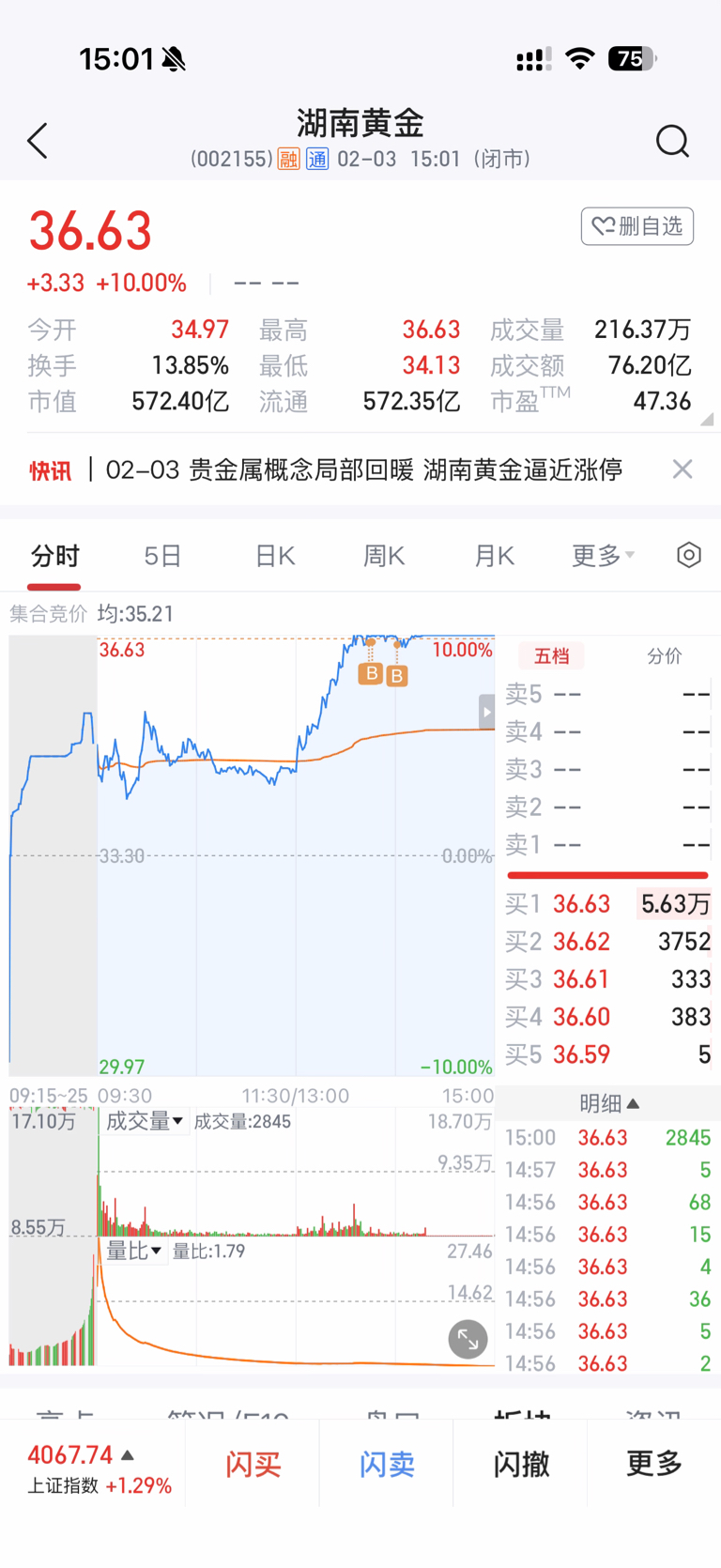 $湖南黄金(SZ002155)$ 打板 明天别埋