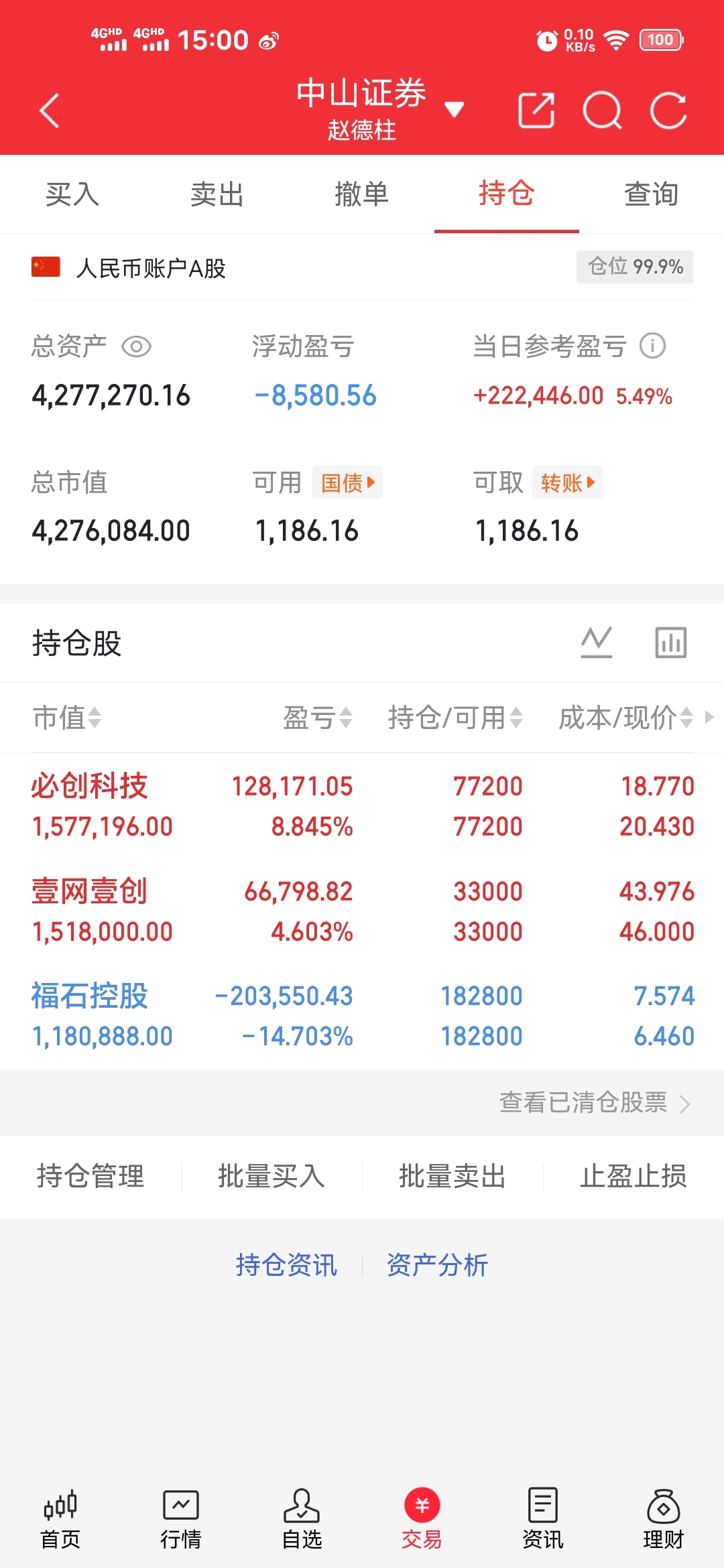 今天持仓保持不变,昨天跌的都回来了。