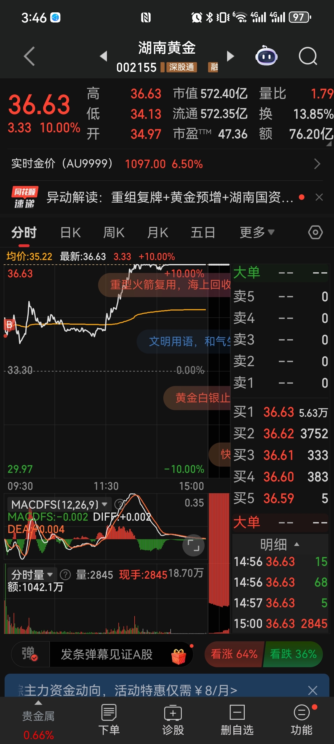 $湖南黄金(SZ002155)$ 别人恐惧我贪婪