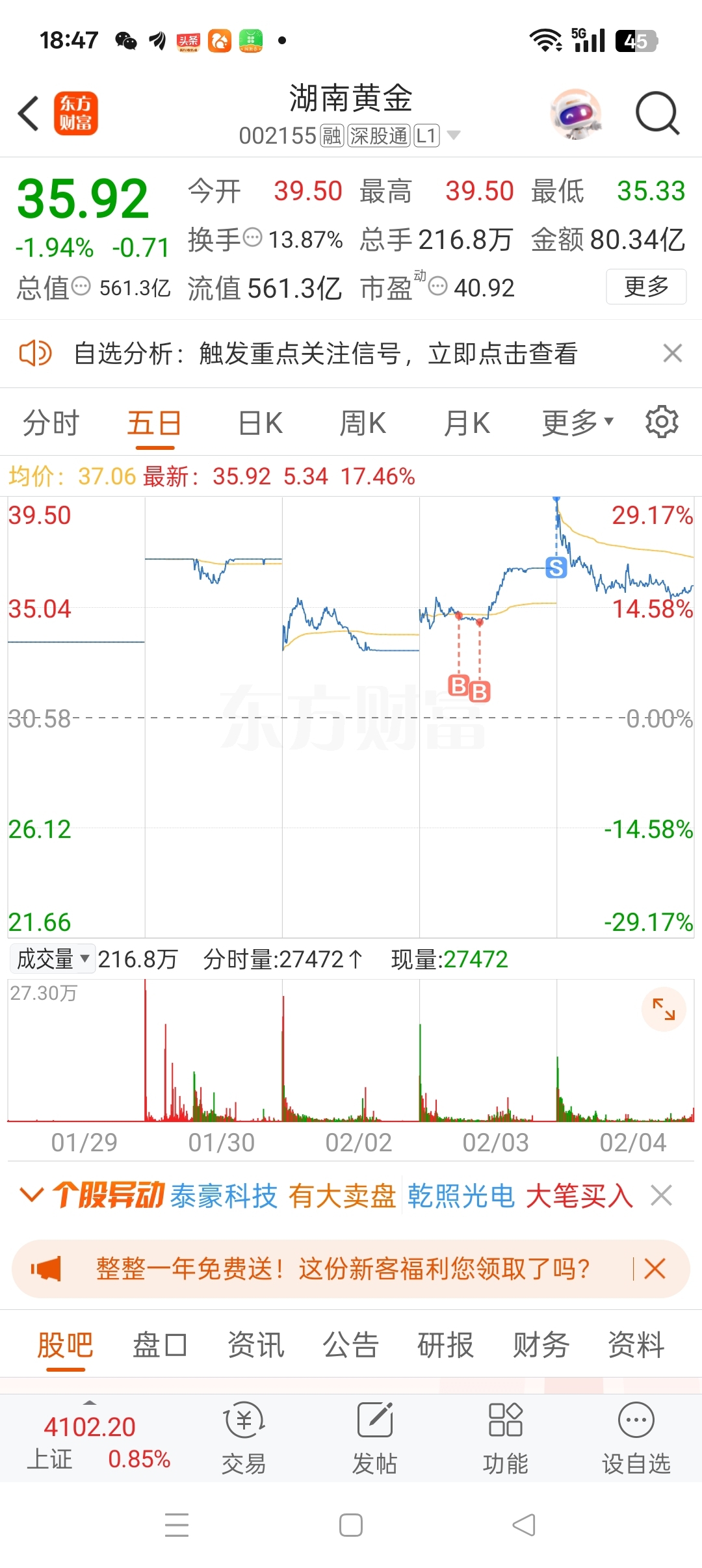 $湖南黄金(SZ002155)$