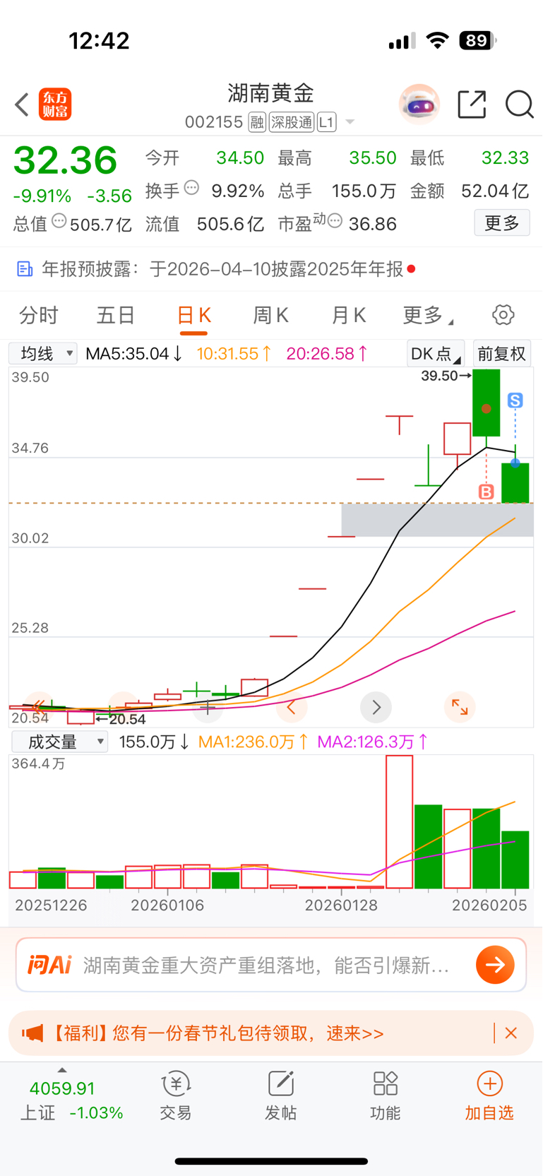 $湖南黄金(SZ002155)$ 这玩意买不得,进来就是一碗面,竞价我就割了,毫不留情