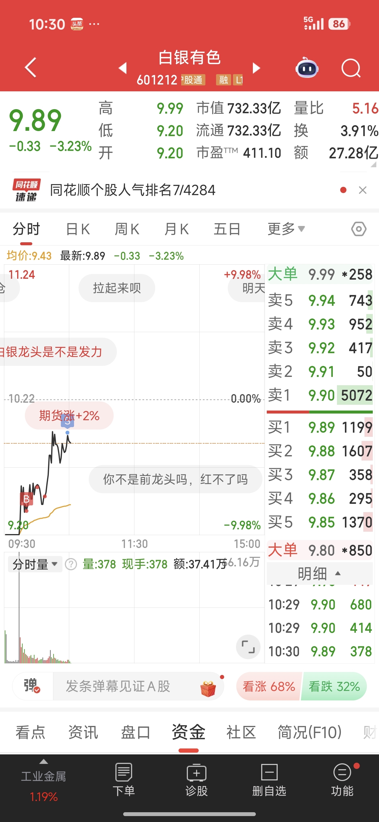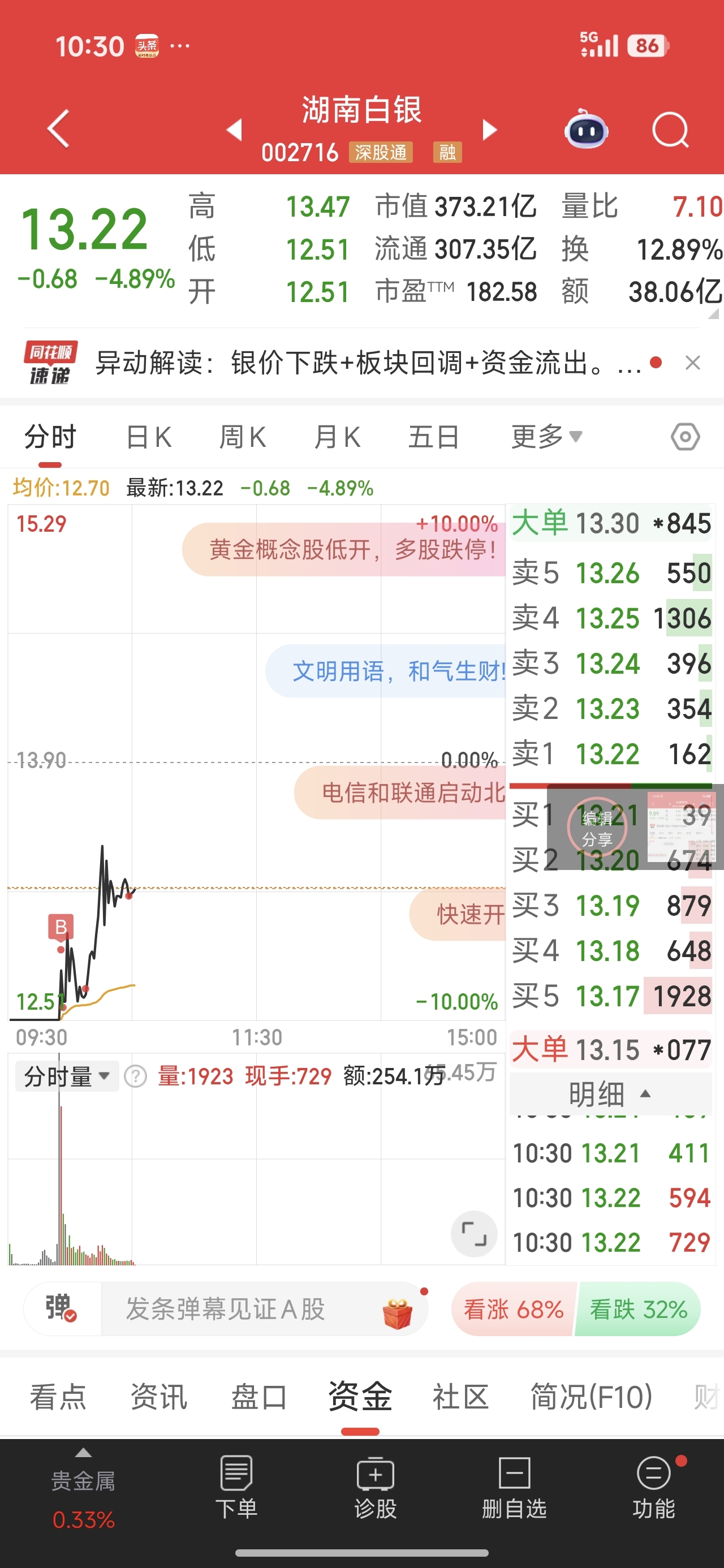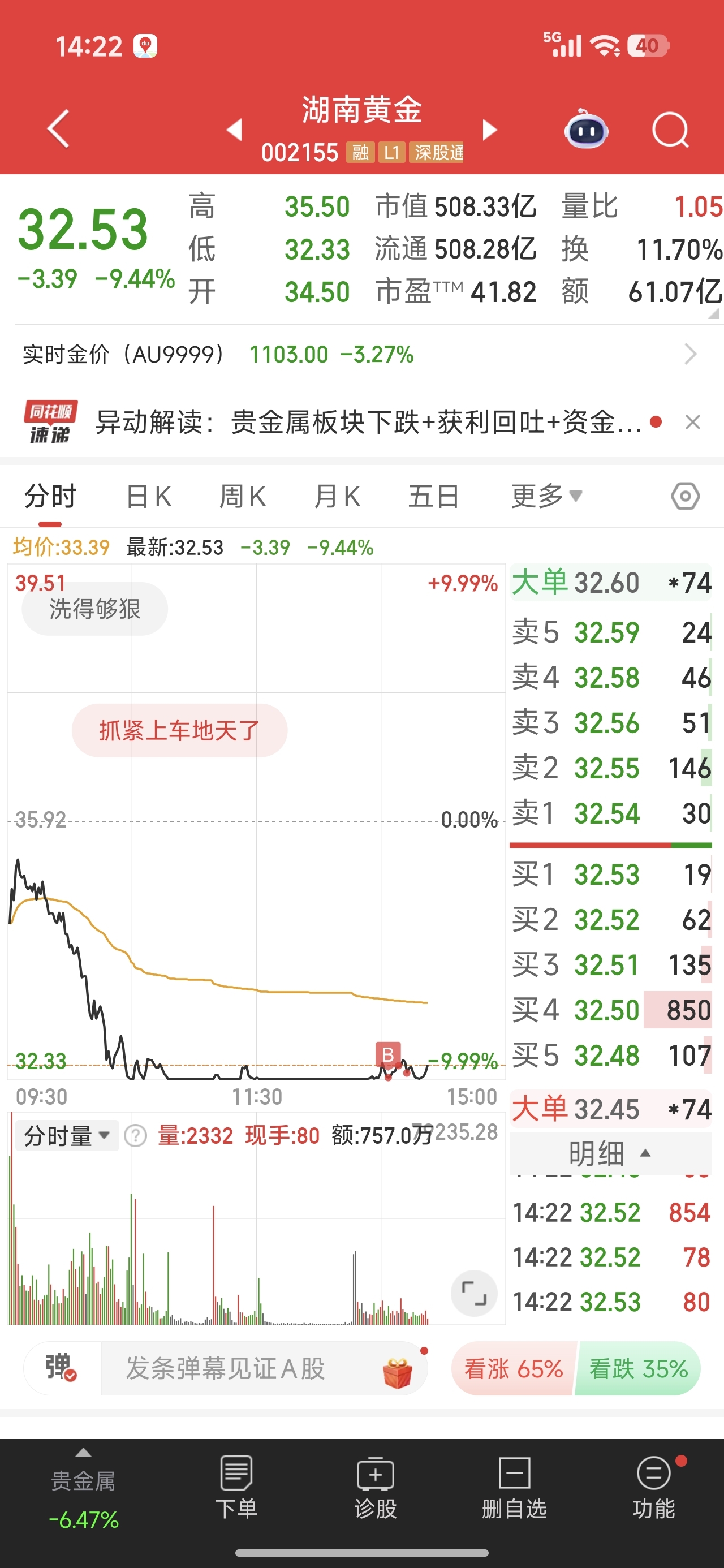 昨天卖2手西部黄金买2手湖南黄金送一手中色股份,今天就没有那种好事了。因为我最记得我分红湖南黄金的那一天,湖南黄金是24,西部黄金是12。