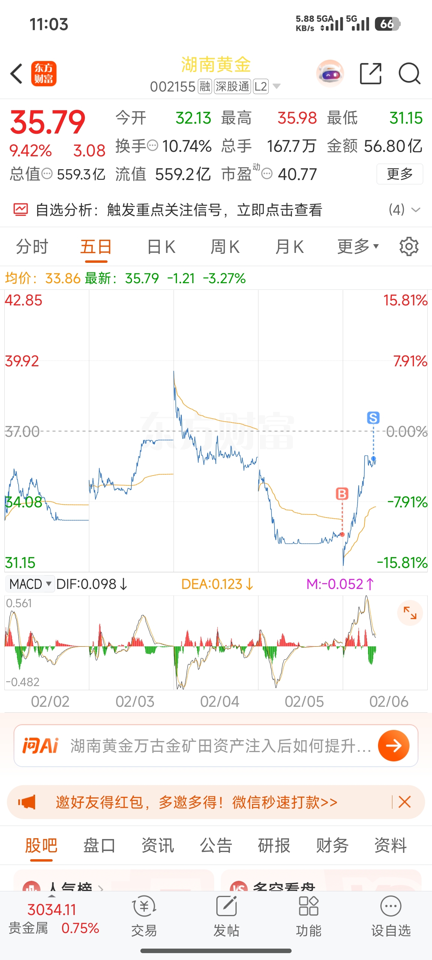 $湖南黄金(SZ002155)$ 不贪 吃完就跑