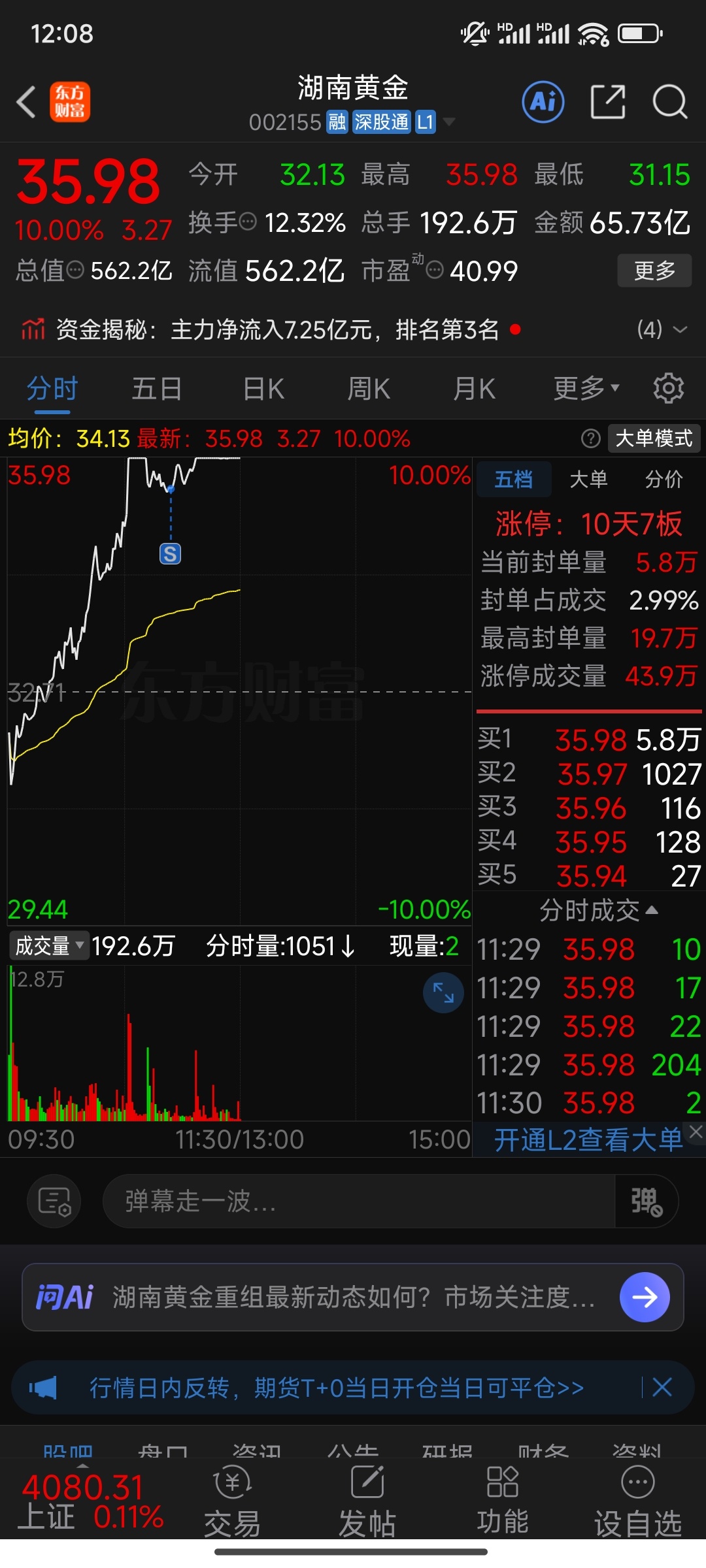 $湖南黄金(SZ002155)$ 感谢主力不杀之恩,保住盈利,后面的头留给胆大的