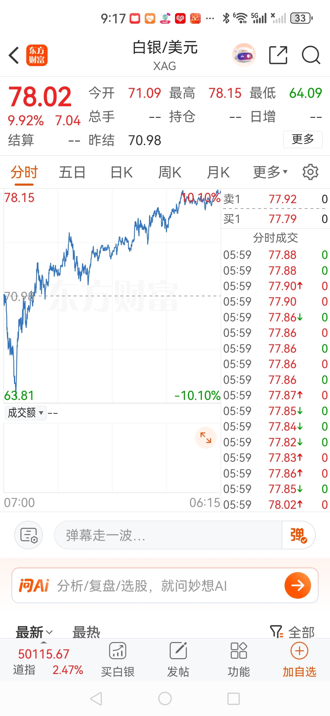 今天外围白银期货涨停,黄金大涨4个点,下周一开盘,秒涨停板,买不进去!哈哈哈