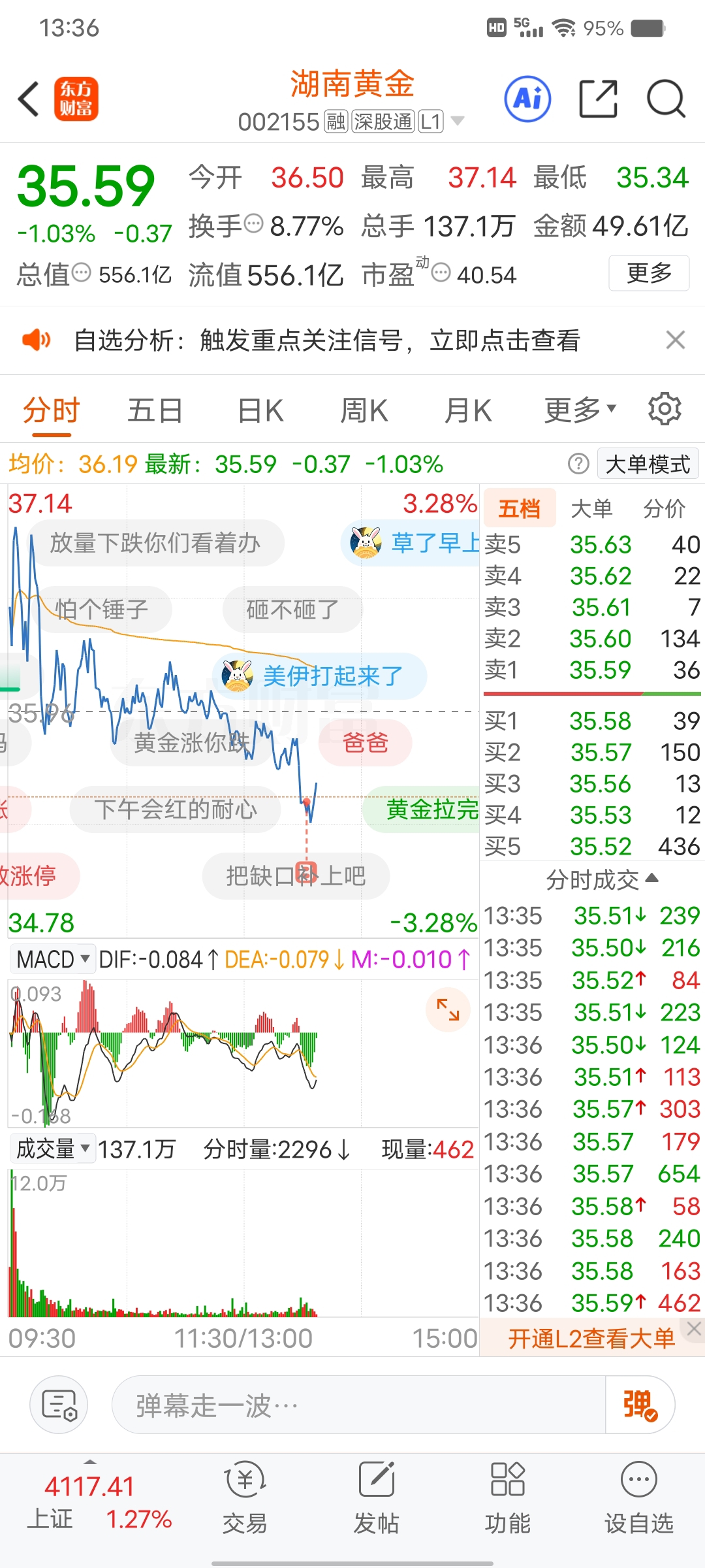 $湖南黄金(SZ002155)$ 越跌我越兴奋。跌五个点加两层仓。继续