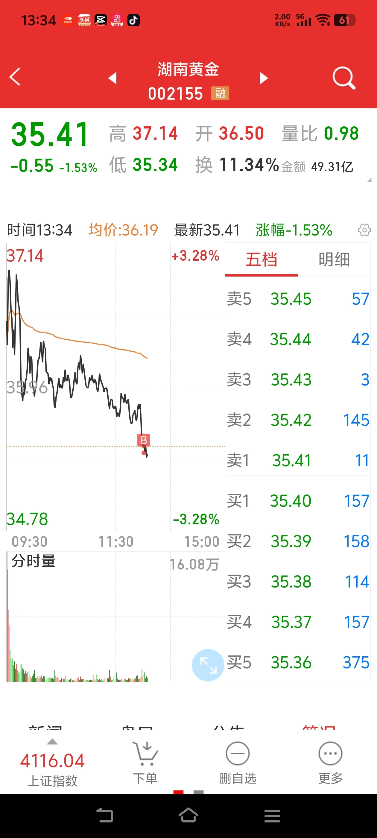 $湖南黄金(SZ002155)$ 又来挑战一下,上次亏了