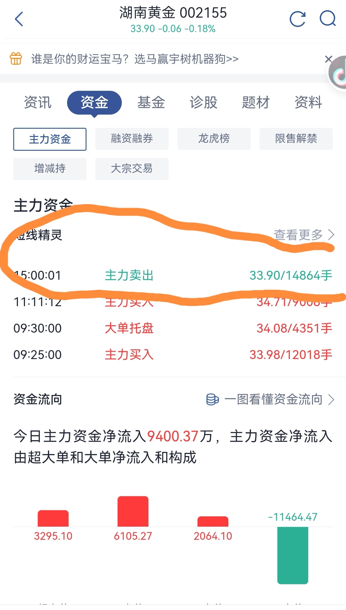 $湖南黄金(SZ002155)$ 主力资金挣命往出跑,这个黄金票废了!
