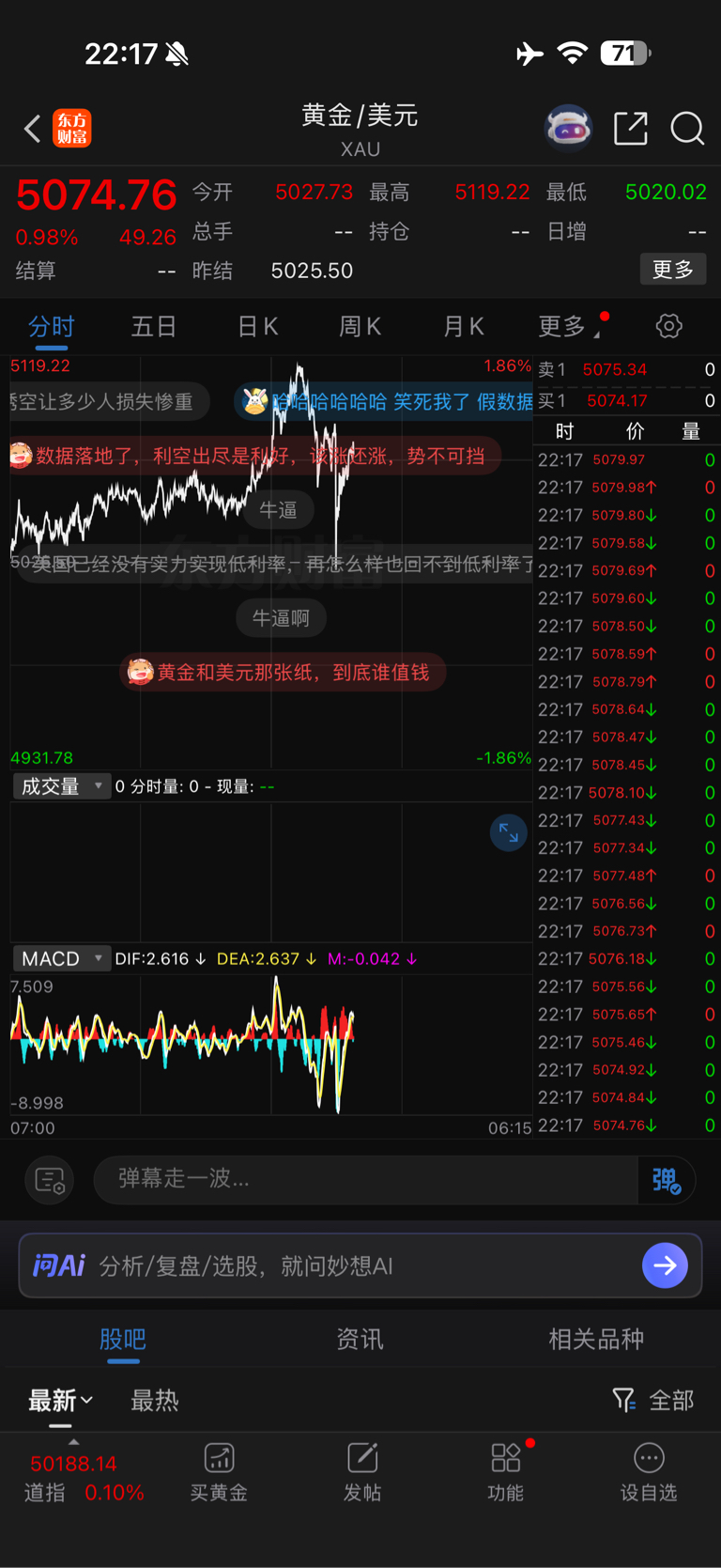 利空落地,黄金强势反弹,公布非农后黄金现价还高于收盘价格,解读:资金并没有因为“