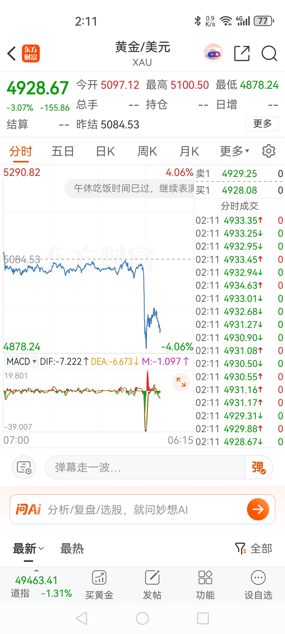 $湖南黄金(SZ002155)$ 明天跟不跟跌