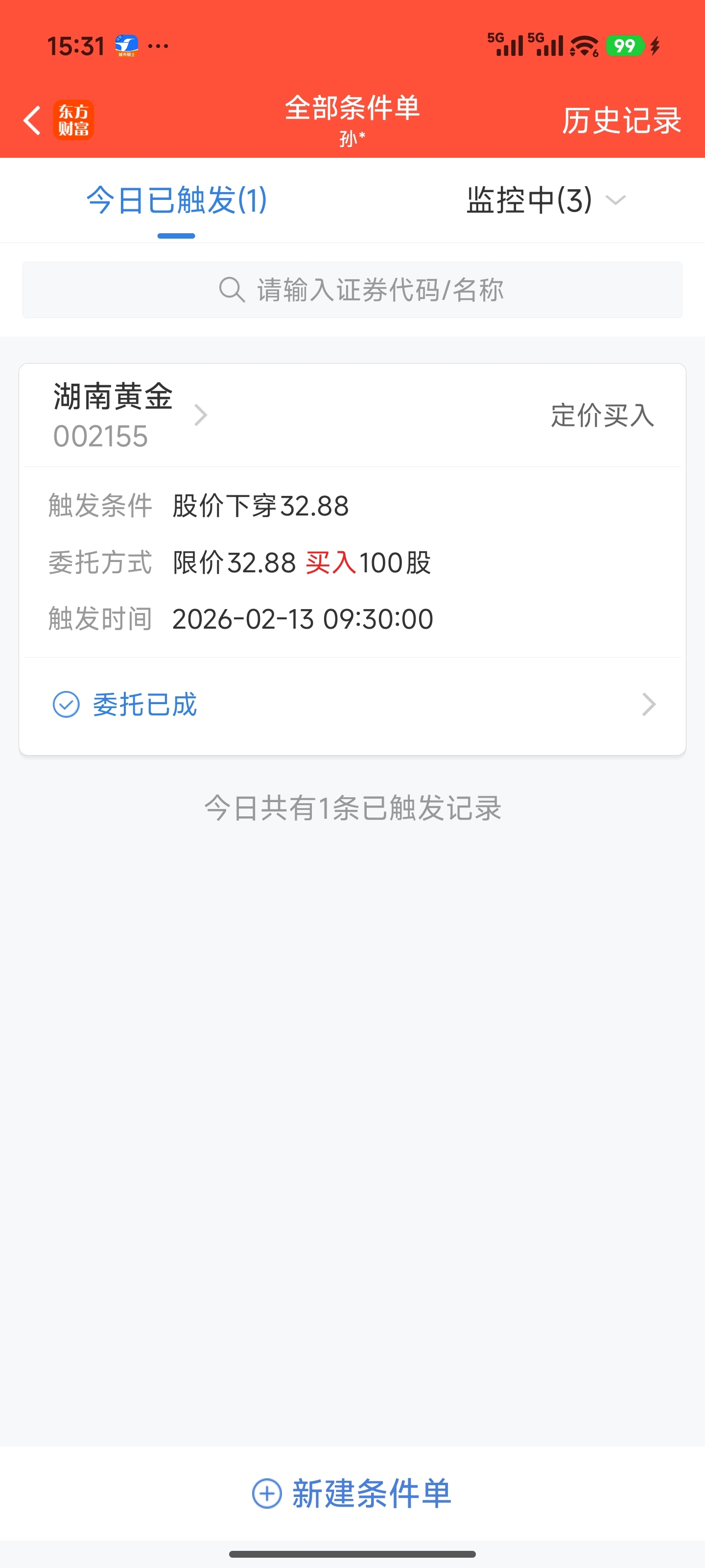 条件单自动买了100股,这也套我,唉