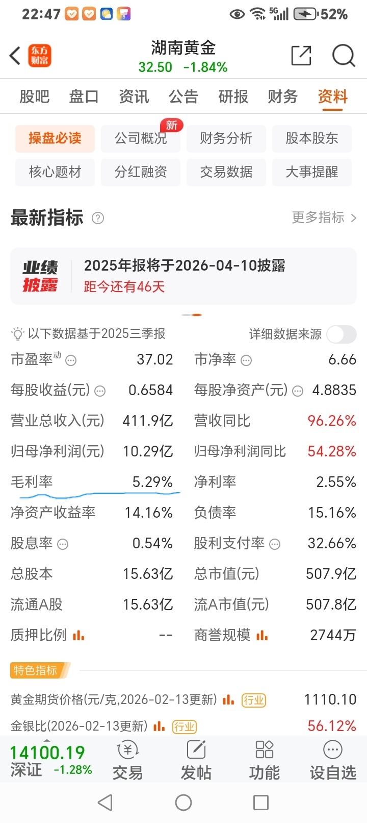 $湖南黄金(SZ002155)$ 湖南黄金5.3%毛利率,不要抬高他,黄金只是矿加工矣