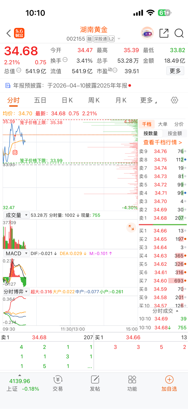 $湖南黄金(SZ002155)$ 媳妇让给她买黄金,我买了……