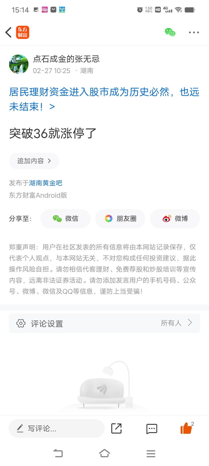 温馨提示: 1.根据《证券法》规定,禁止编造、传播虚假信息或者误导性信息,扰乱证券市场;2.用户在本社区发表的所有资料、言论等仅代表个人观点,与本网站立场无关,不对您构成任何投资建议。用户应基于自己的独立判断,自行决定证券投资并承担相应风险。《东方财富社区管理规定》