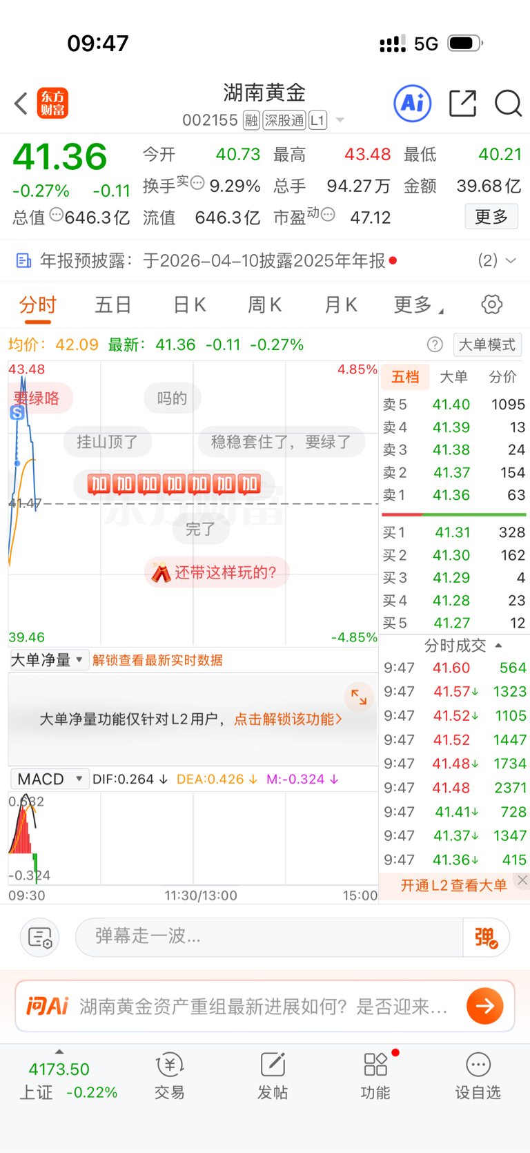 $湖南黄金(SZ002155)$ 开盘吓跑了 没卖在高点 但是算上昨天的吃了五个点 满足了