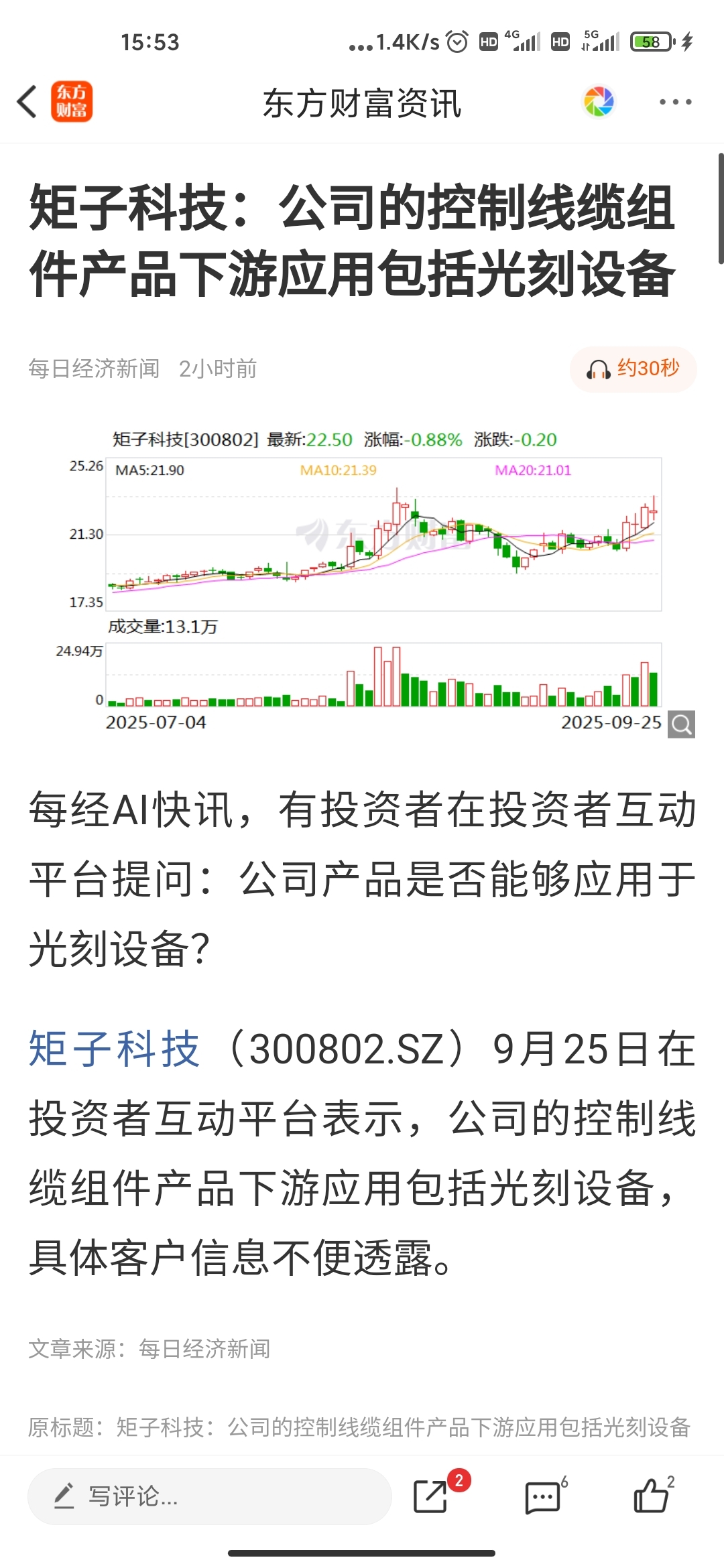 $矩子科技(SZ300802)$ 超级重磅,.矩子科技直接给台积.电供货光刻机关键部件,盘小质优,翻五倍,买入就发财$合锻智能(SH603011)$ $北方铜业(SZ000737)$